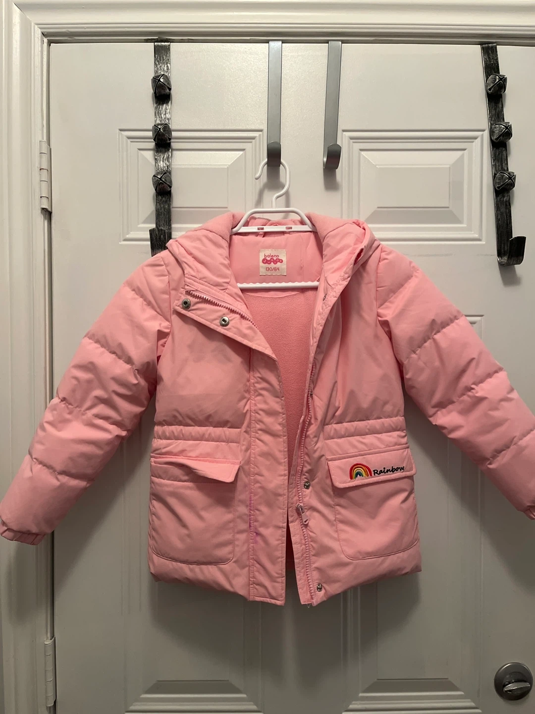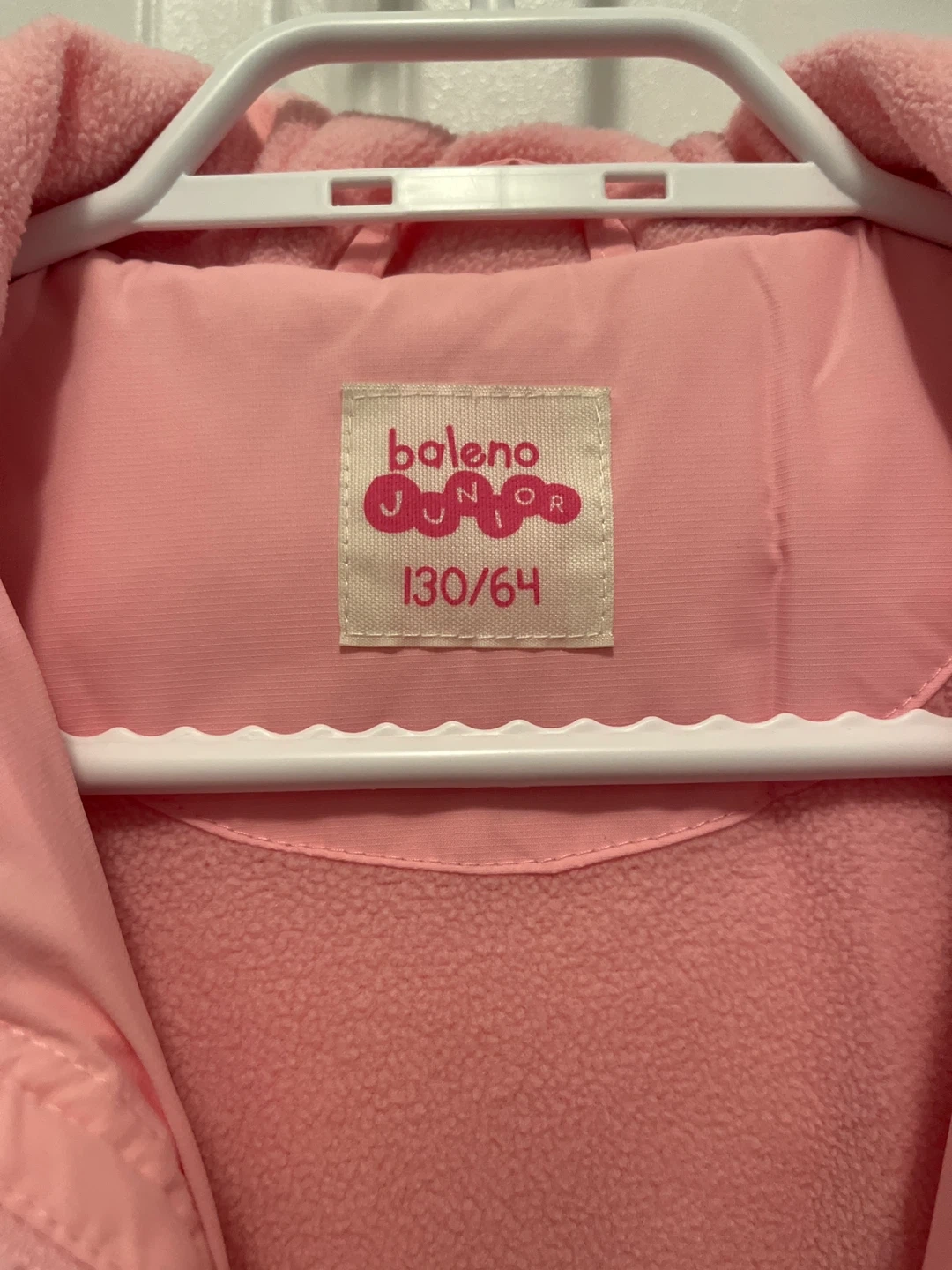 10Selling a cute pink Baleno Junior puffer jacket in size 130. It's made of 100% polyester shell and lining, with 80% down and 20% feather filling. Perfect for keeping your little one warm and cozy!