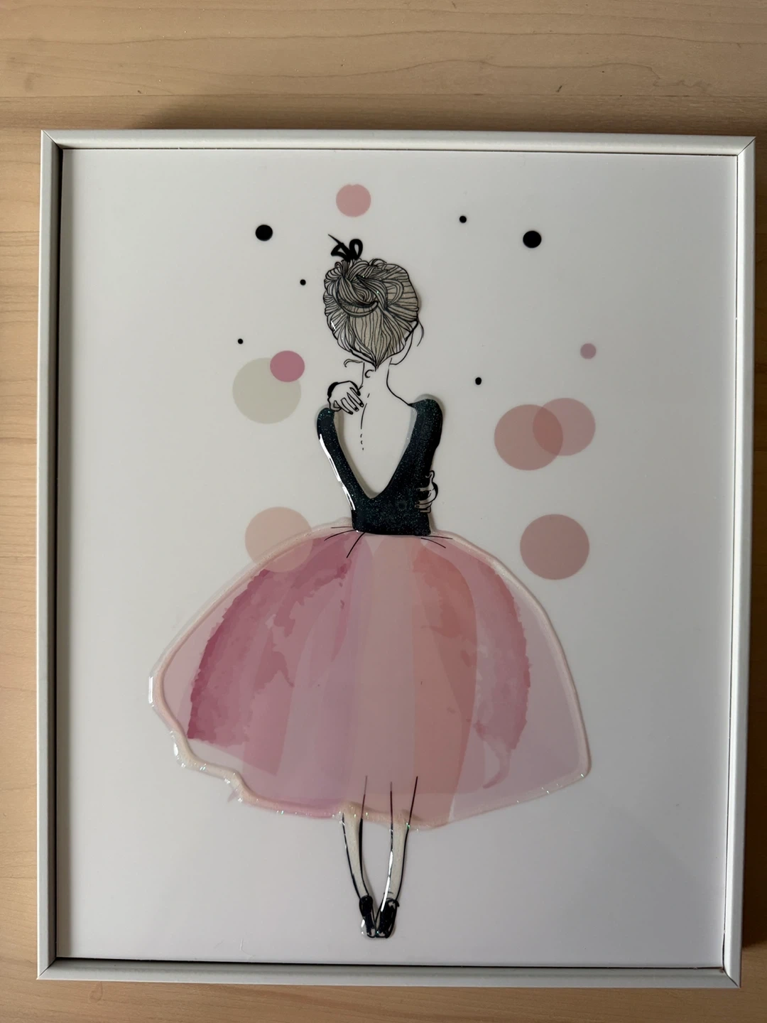 1000+A beautiful framed wall art piece featuring a ballerina in a pink dress. It's in great condition and would look lovely in any room