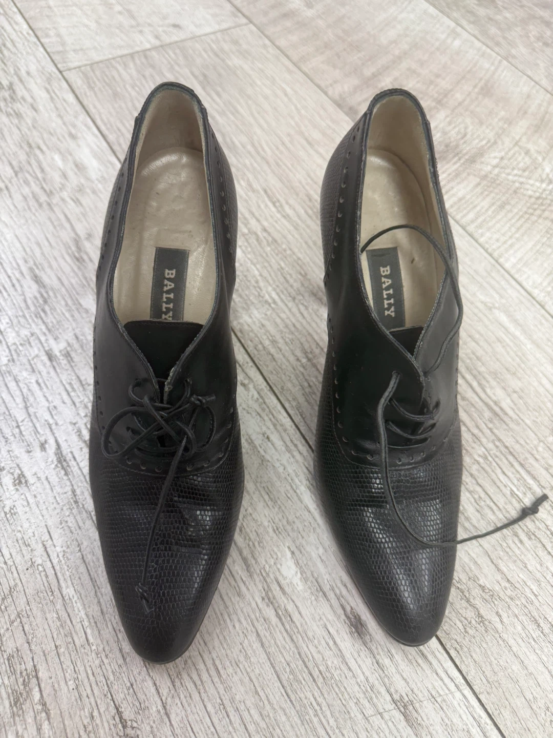 215Selling a pair of Bally black leather heeled oxfords in size 7. They show some signs of wear but are still in good condition and ready for a new home! Shoes only