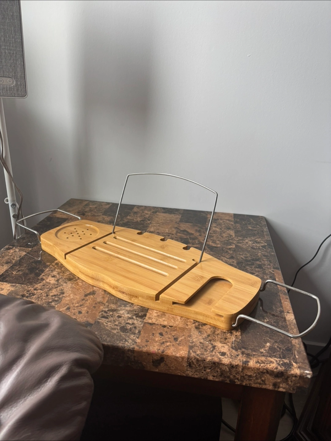 174Selling a bamboo bathtub caddy! It's perfect for holding your book, phone, or a glass of wine while you relax in the tub