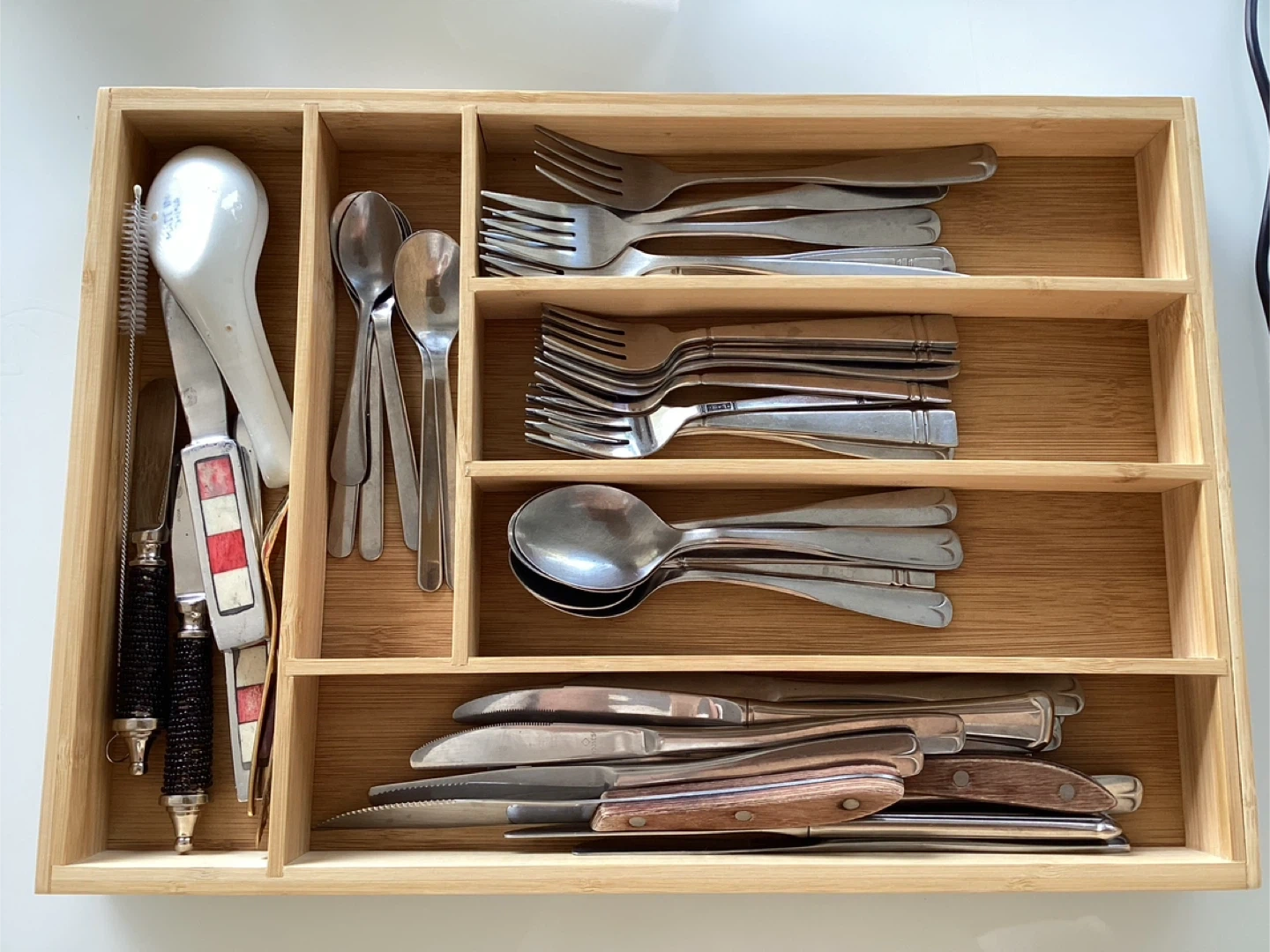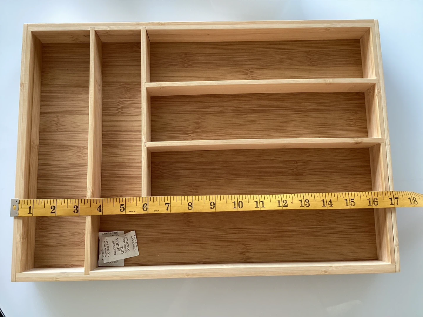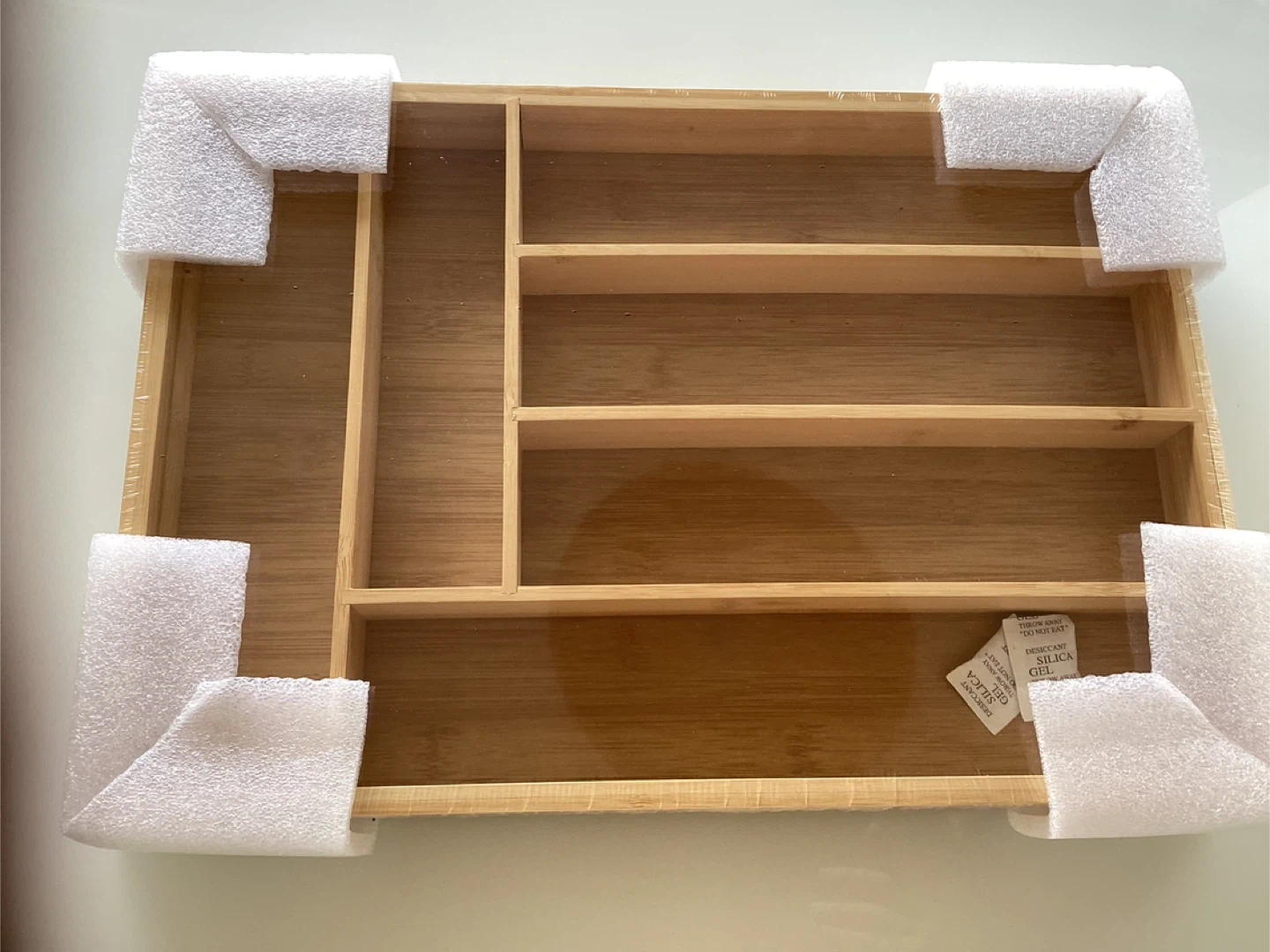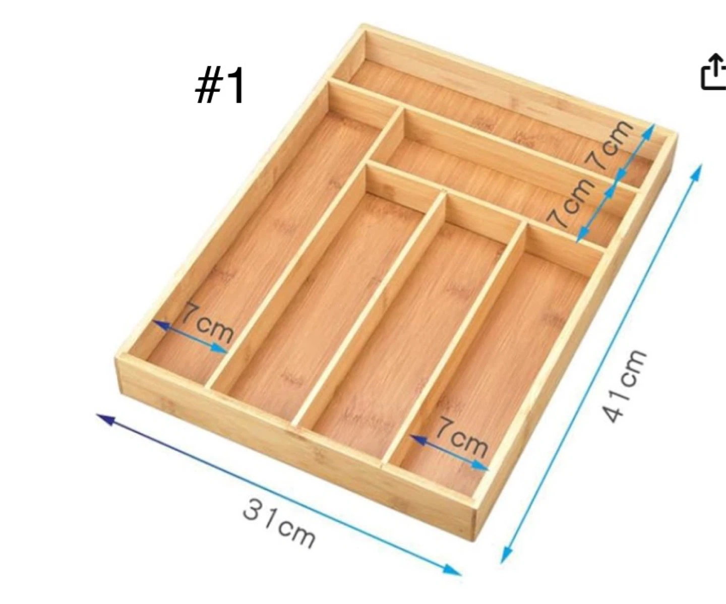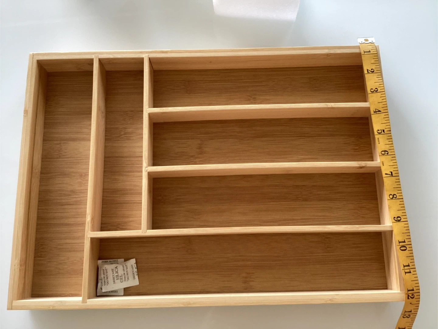 Brand new Bamboo Declutter your kitchen drawers with this handy bamboo organizer! It's in great condition and ready to help you keep your cutlery and utensils neatly arranged. The dimensions are approximately 31 cm x 41 cm.