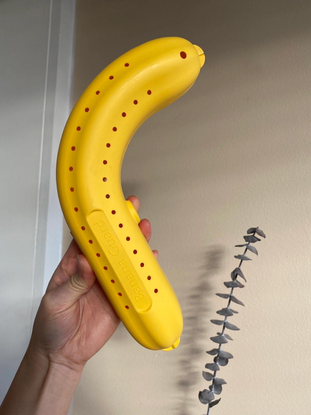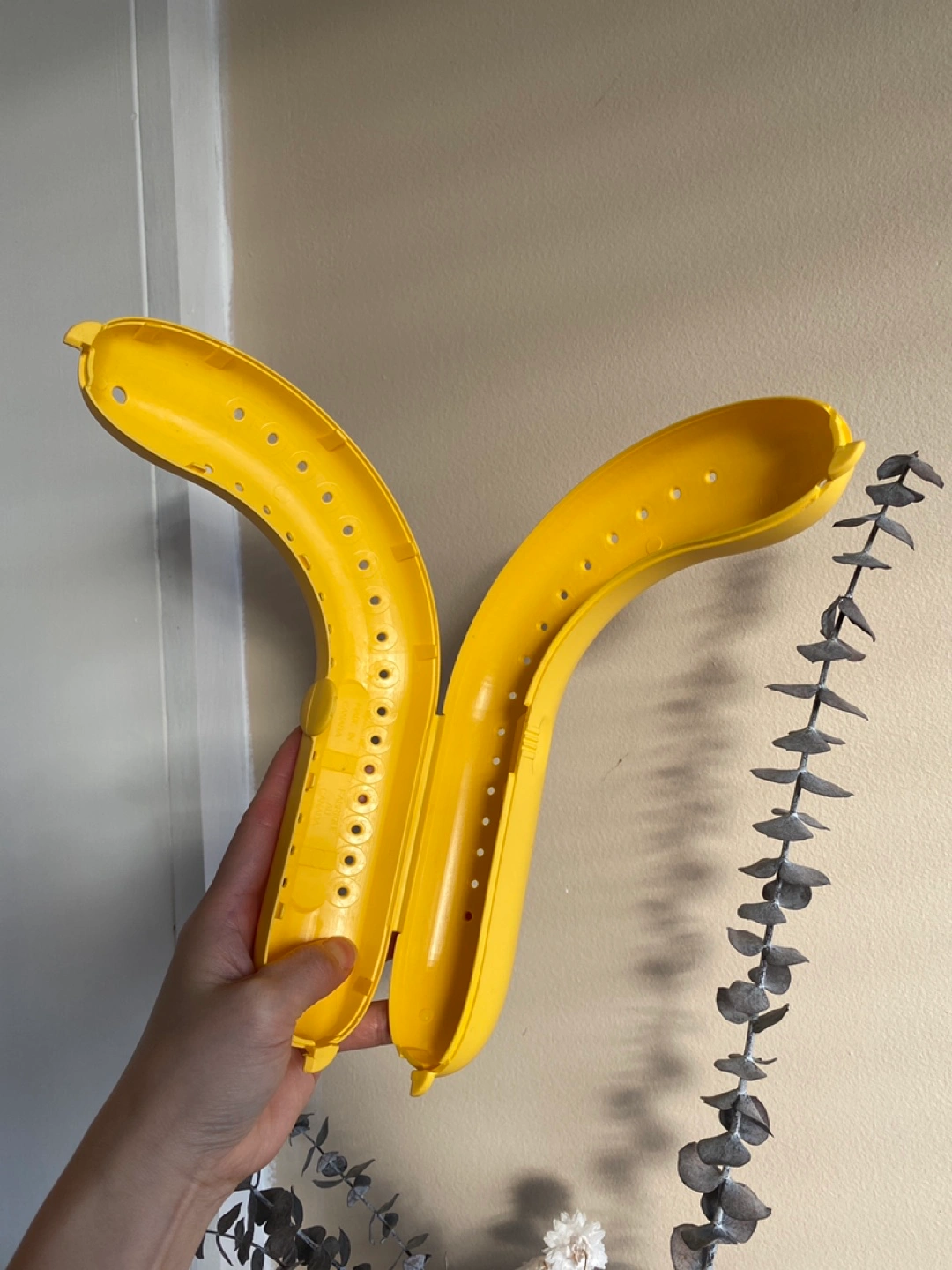 Keep your banana from being squished. Made of durable plastic. Portable and reusable. Great for lunchboxes.