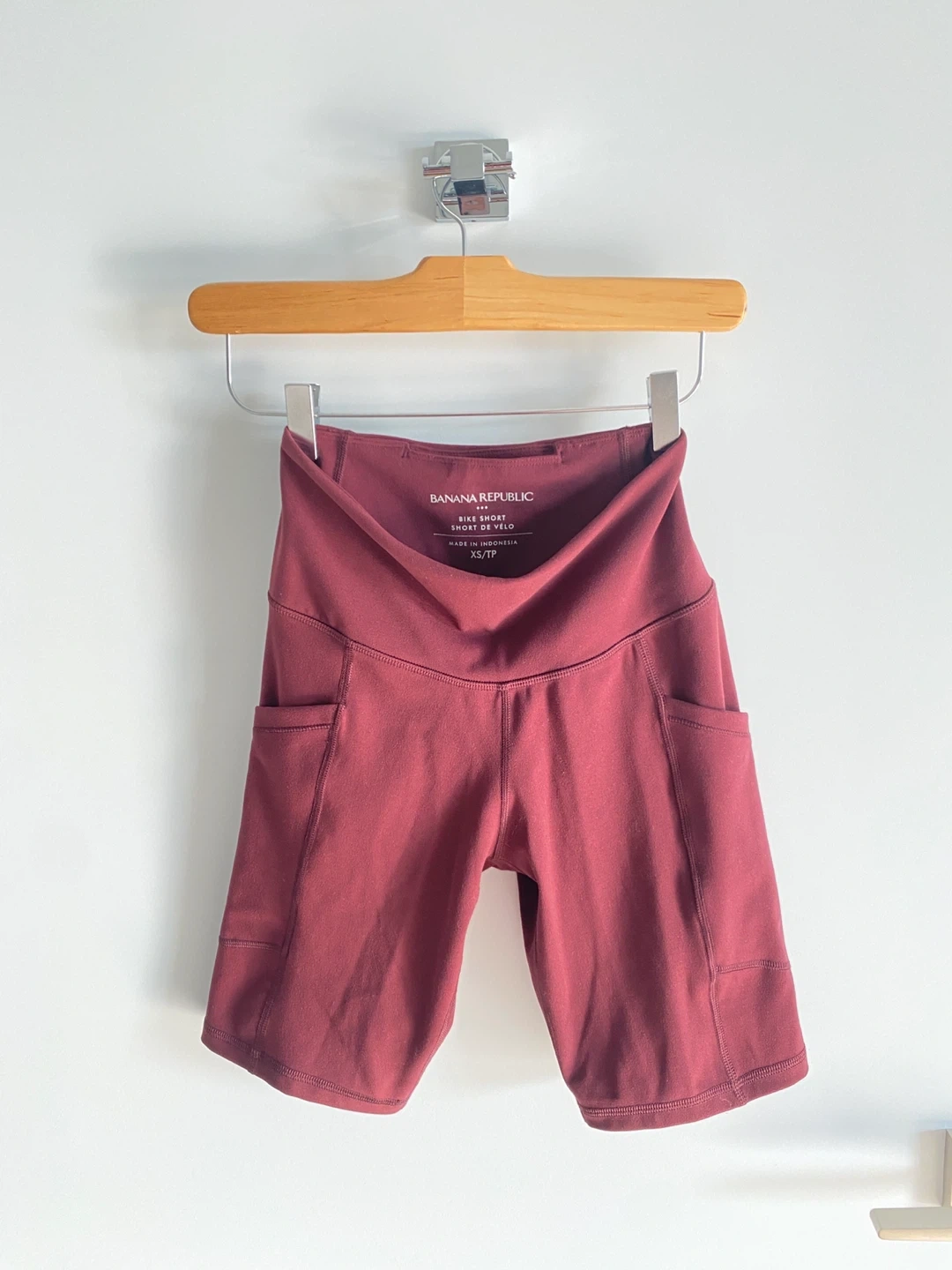 Banana republic workout shorts in this gorgeous maroon colour. Very soft, comfortable and breathable material. Has two deep pockets on side and thick waist band that will give you a very flattering look! Size XS ❤️Check out my other listings!