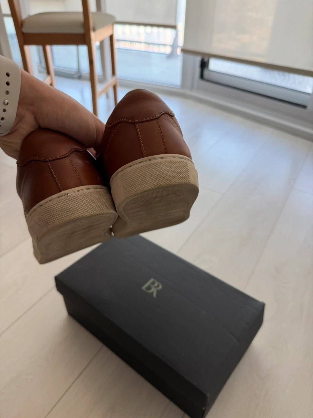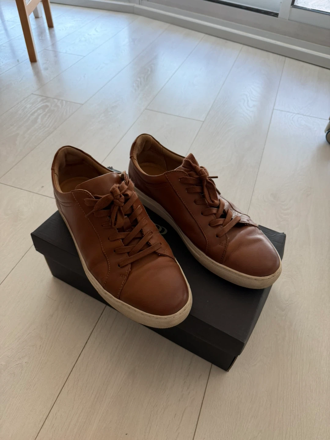 Selling a pair of Banana Republic leather sneakers in great condition. They are a size 11 and come with the original box. The sneakers are a nice brown colour and made of leather. Perfect for everyday wear!