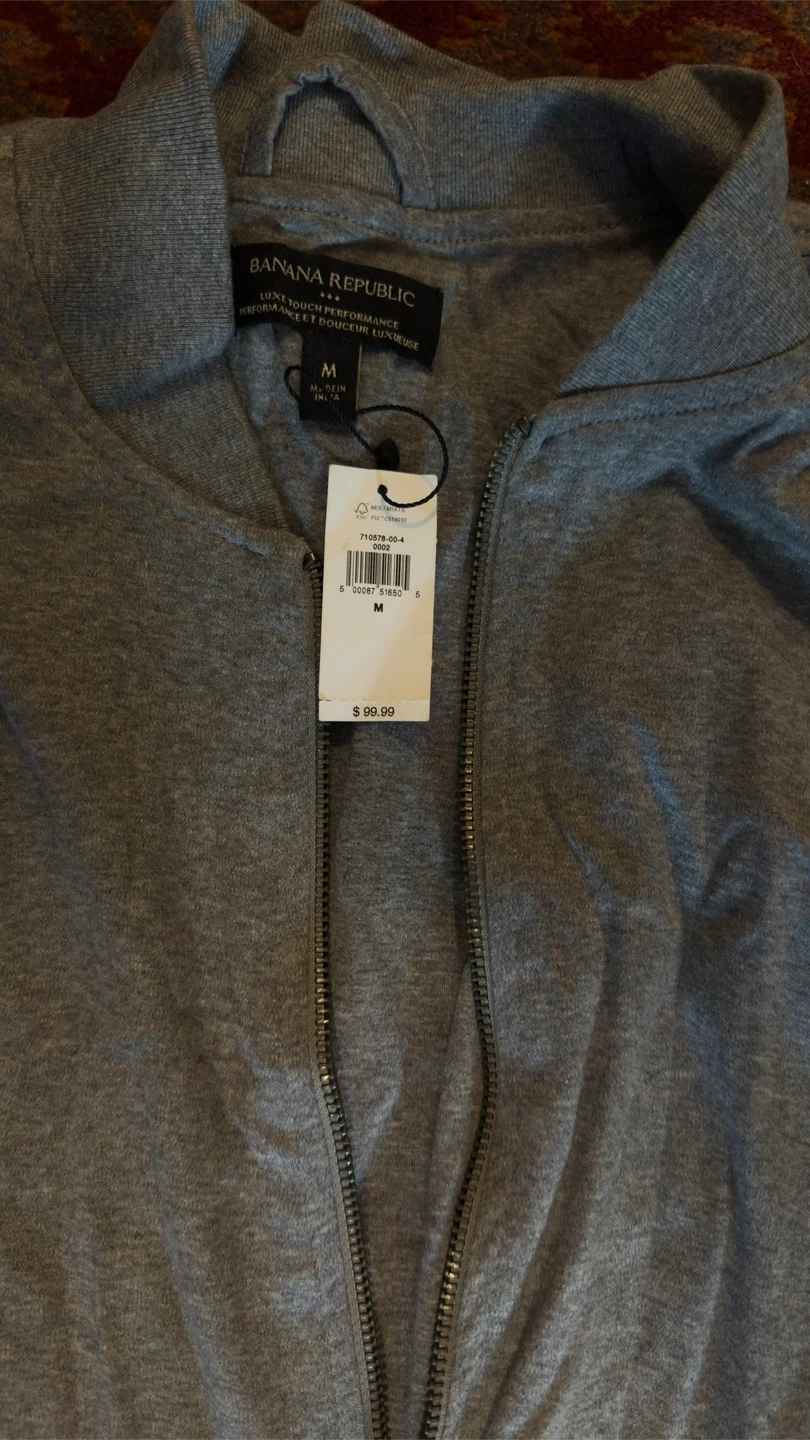 Selling a brand new with tags Banana Republic Luxe Touch Performance bomber jacket in size medium! It's a stylish and comfortable jacket, perfect for layering. Originally bought for $99.99!