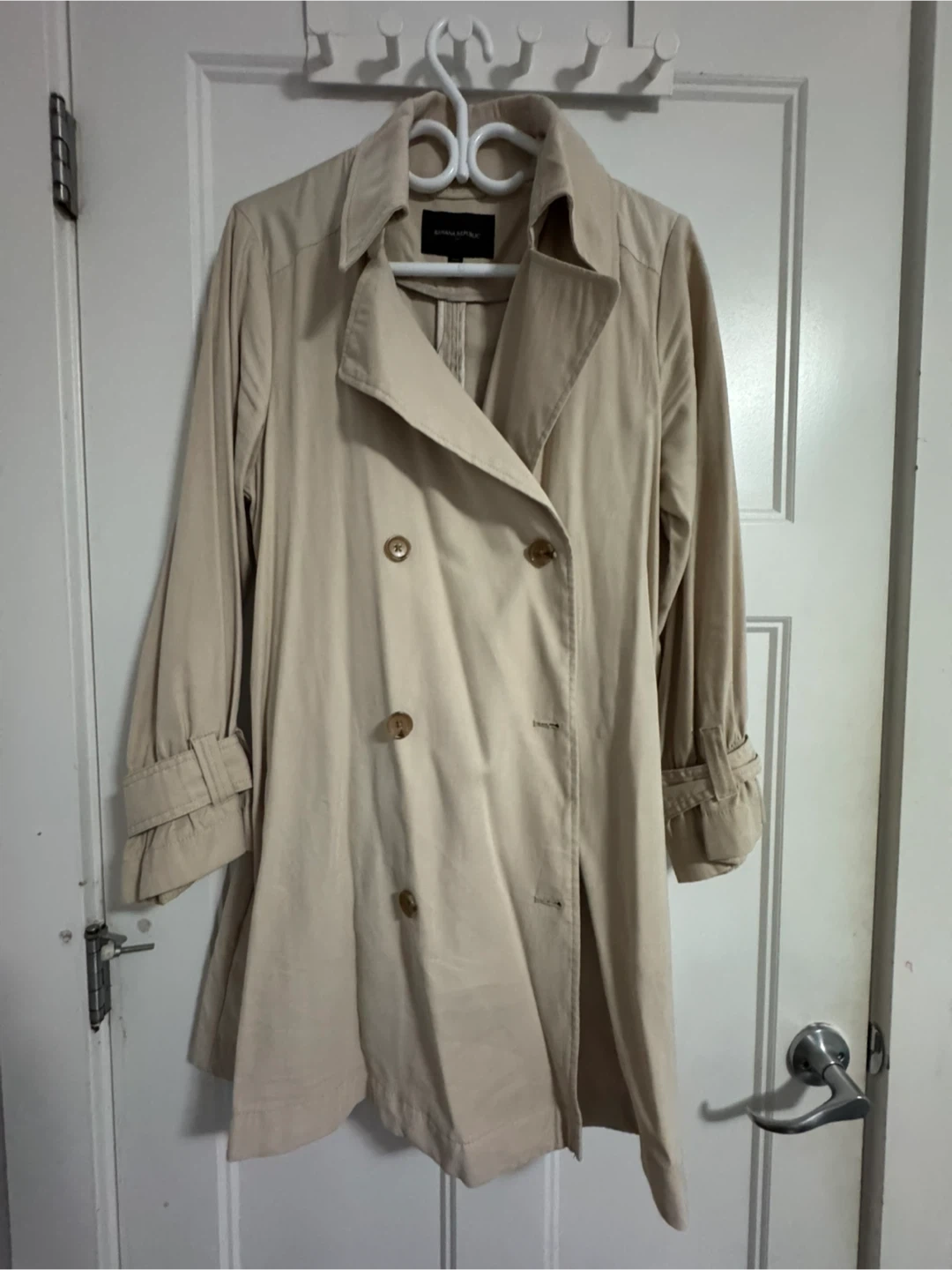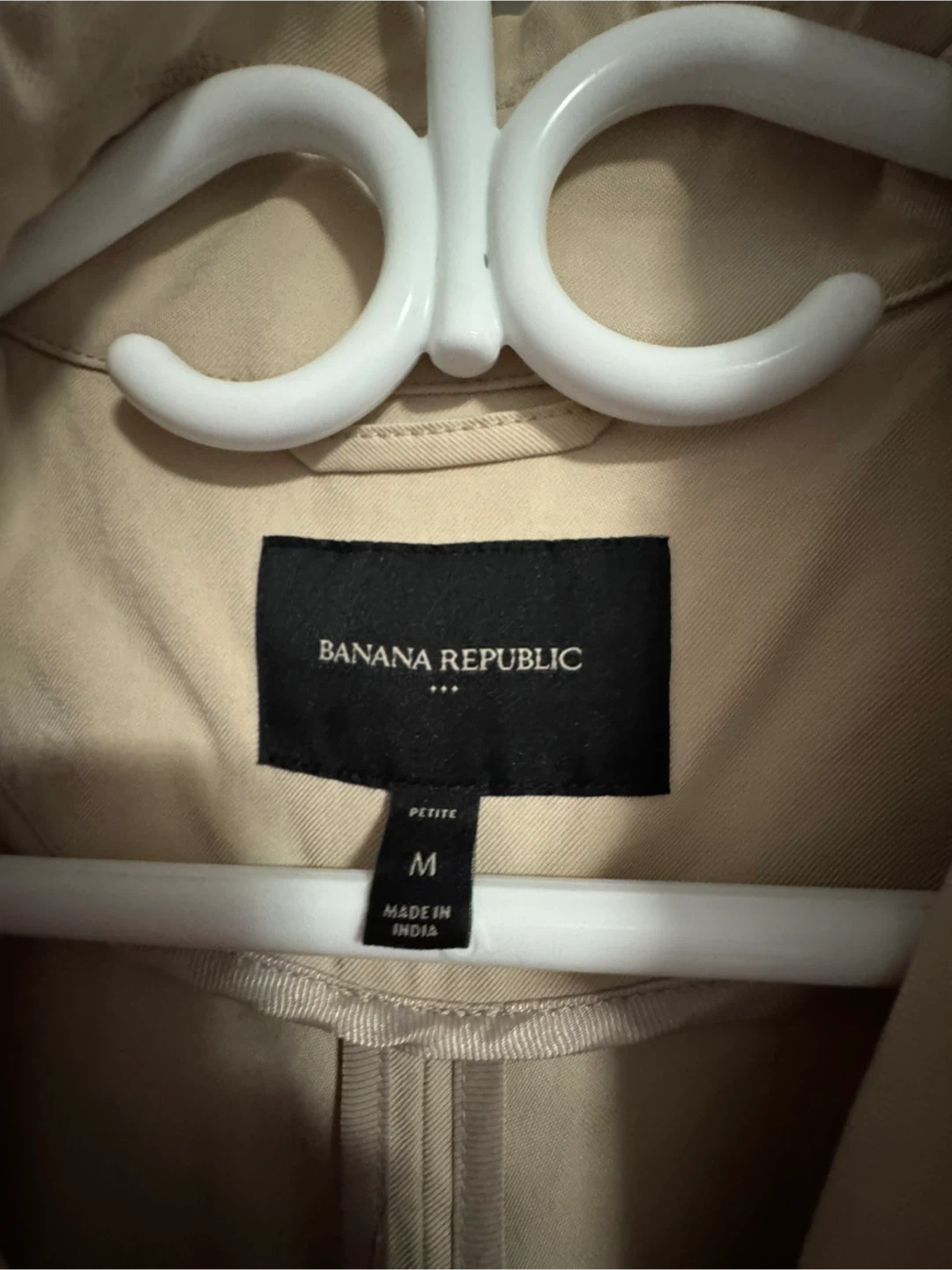 5Selling a Banana Republic petite trench coat in a neutral colour. It's a size M and perfect for fall weather. In great condition!