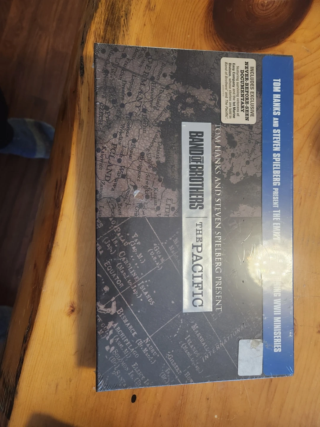 Selling a DVD set of Band of Brothers and The Pacific, presented by Tom Hanks and Steven Spielberg. It includes an exclusive never-before-seen documentary featuring surviving veterans of Easy Company and the 1st Marine Division. A great addition to any WWII miniseries collection!