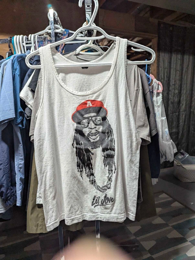 I have an assortment of sizes of band shirts or Graphic shirts. Shirts are $35 each with the accepting of Lil Wayne white muscle shirt $50, Ice Cube is $50, Death row records drop short $50. Skid row t-shirt is $40. If you do not see them in this listing, check out my other listings for more band shirts. Pick up on Coaldale or Lethbridge. Questions for sizes please message! Thank you.