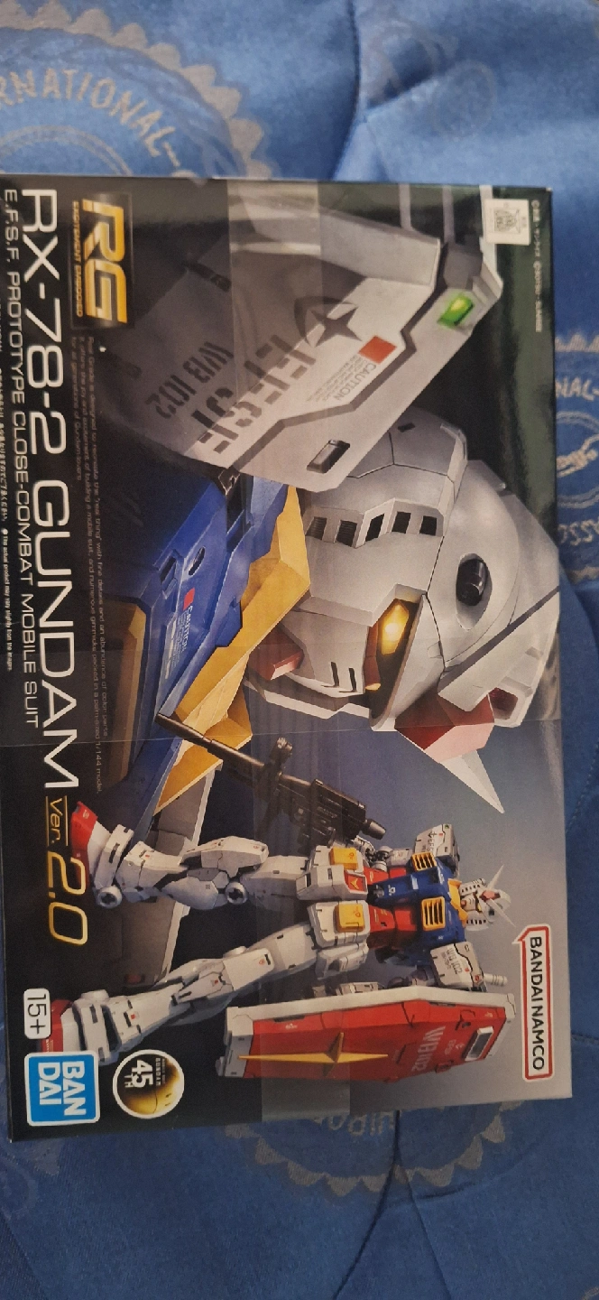 10Selling a Bandai RX-78-2 Gundam Ver. 2.0 model kit! This is a Real Grade (RG) model, standing at 1/144 scale. The box is included and shows the classic design of the E.F.S.F. Prototype Close-Combat Mobile Suit