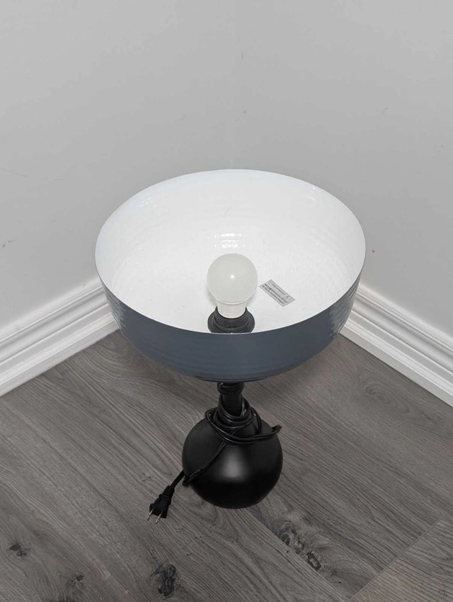 Illuminate your space with this modern table lamp, featuring a sleek gray shade and a sturdy black base. This used lamp is perfect for adding a touch of style to any room, casting a warm and inviting glow. It's in good condition and ready to brighten up your home! Colour: Grey and Black. Type: Table Lamp. Condition: Used. This lamp is looking for a new home. If you see this ad, the lamp is still available, ready to light up your life!