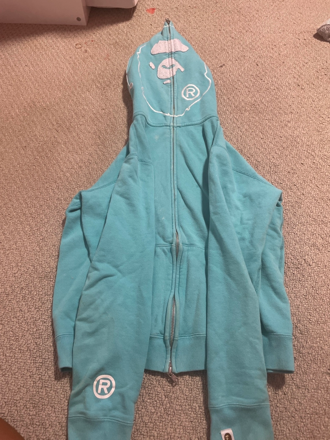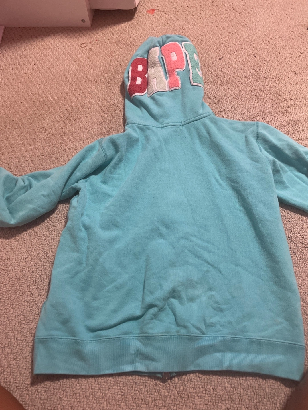 BAPE full zip hoodie in a cool blue colour! Great for adding a pop of colour to your wardrobe. Perfect for casual wear or layering during cooler weather
