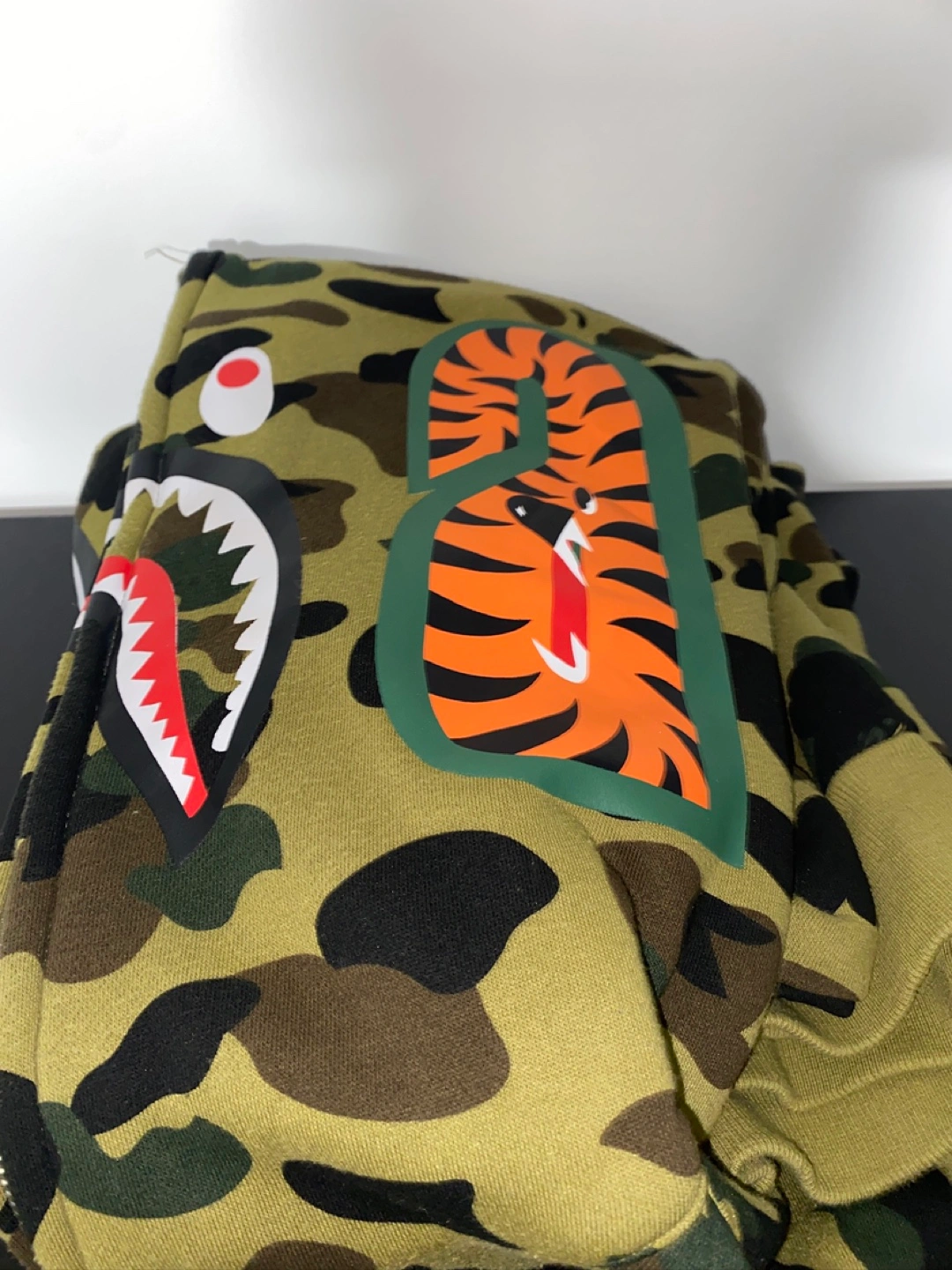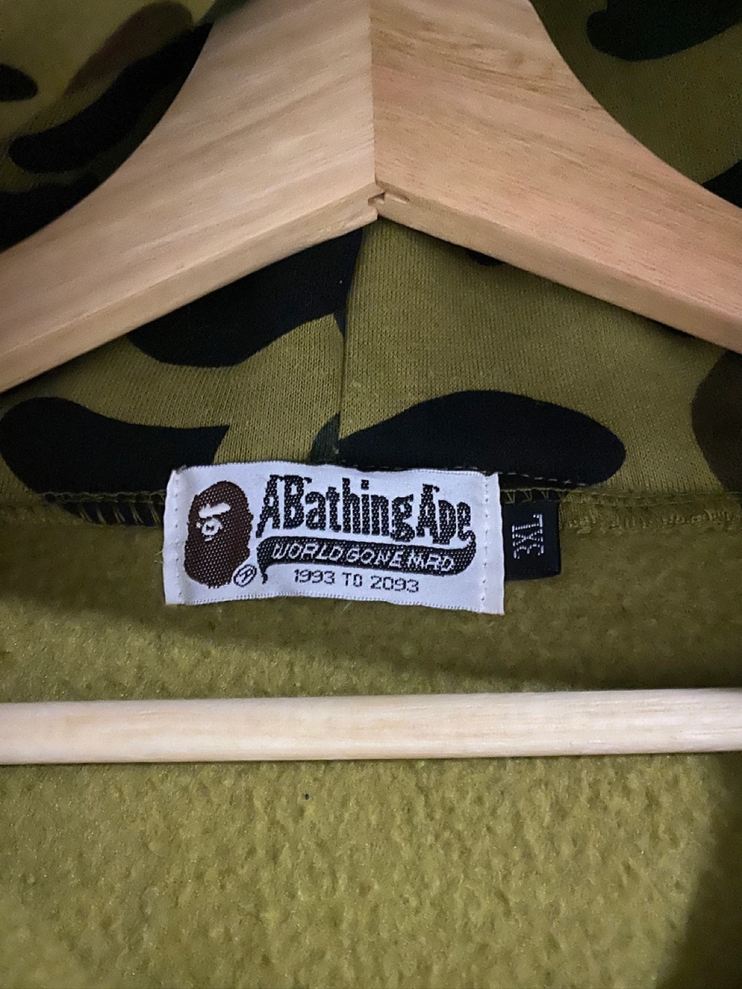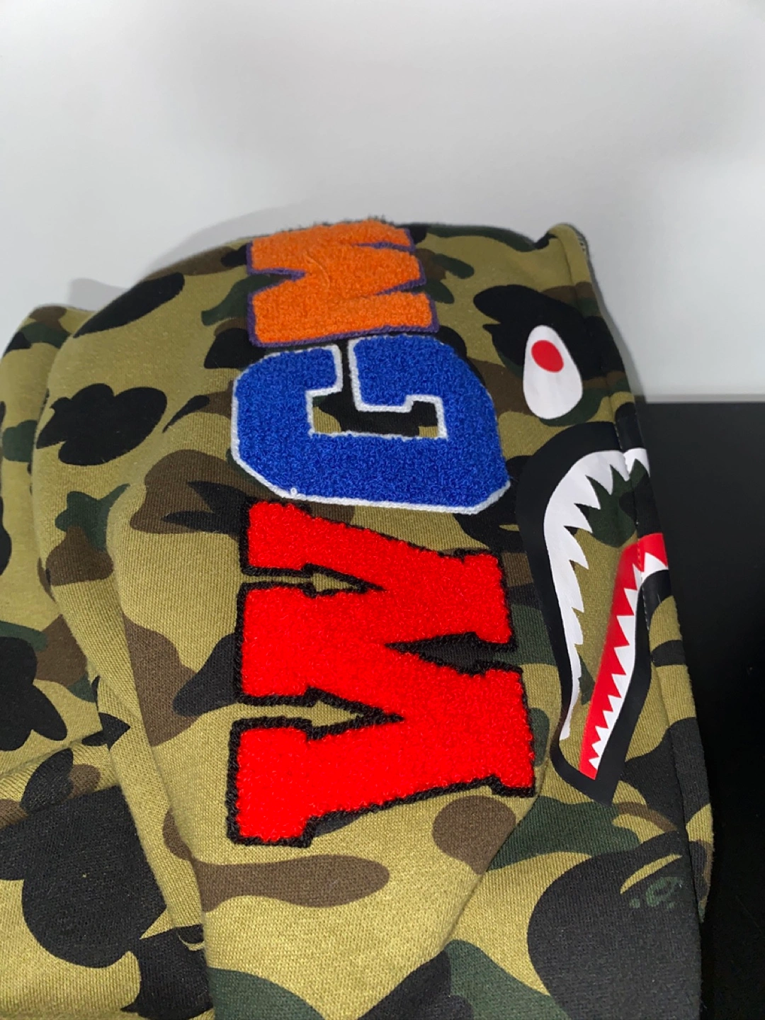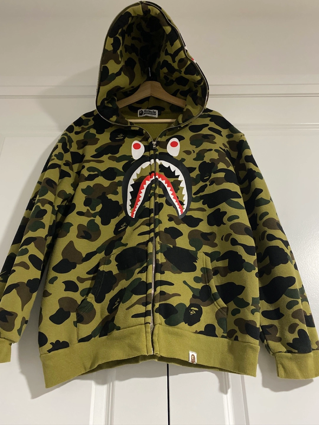 20Green camo hoodie with Bape logo and shark teeth design on the front. Full zip. Size: Large Brand new Reasonable offers will not be declined Shipping available ๐ฆโ