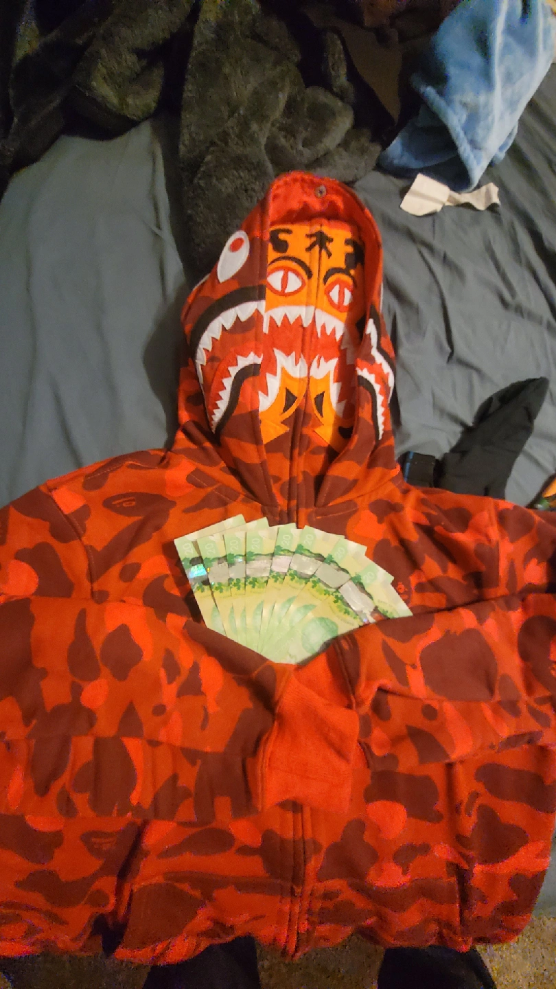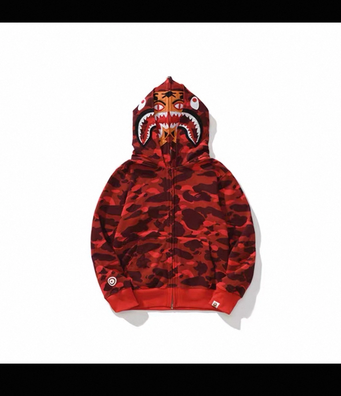 Selling a BAPE hoodie in red camo with the iconic shark design! It's in great condition and ready for a new home. The unique design is sure to turn heads!