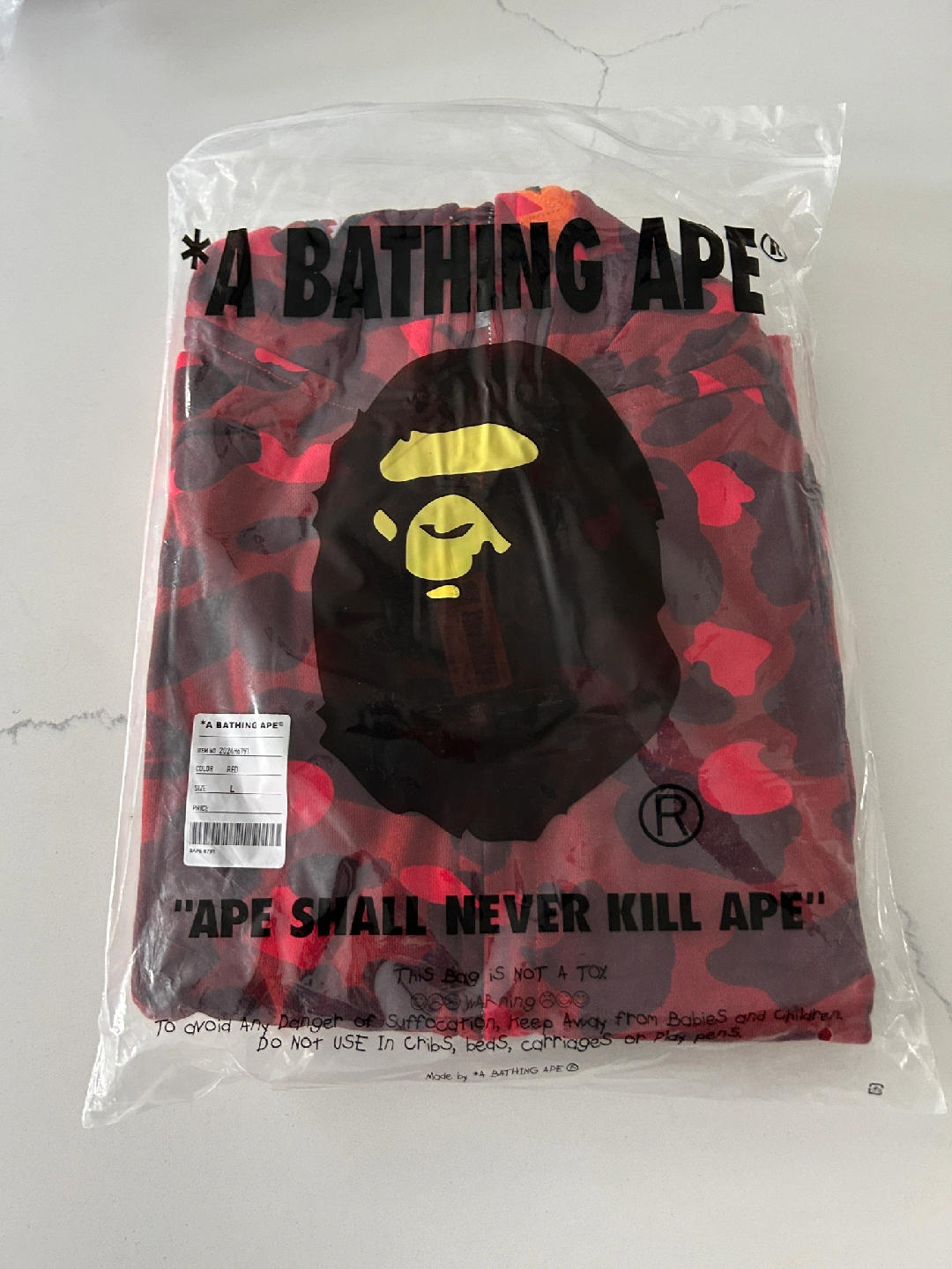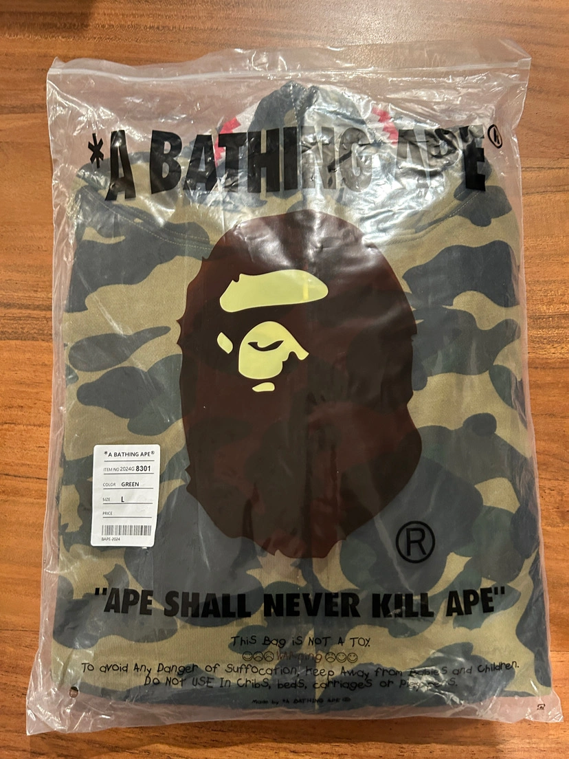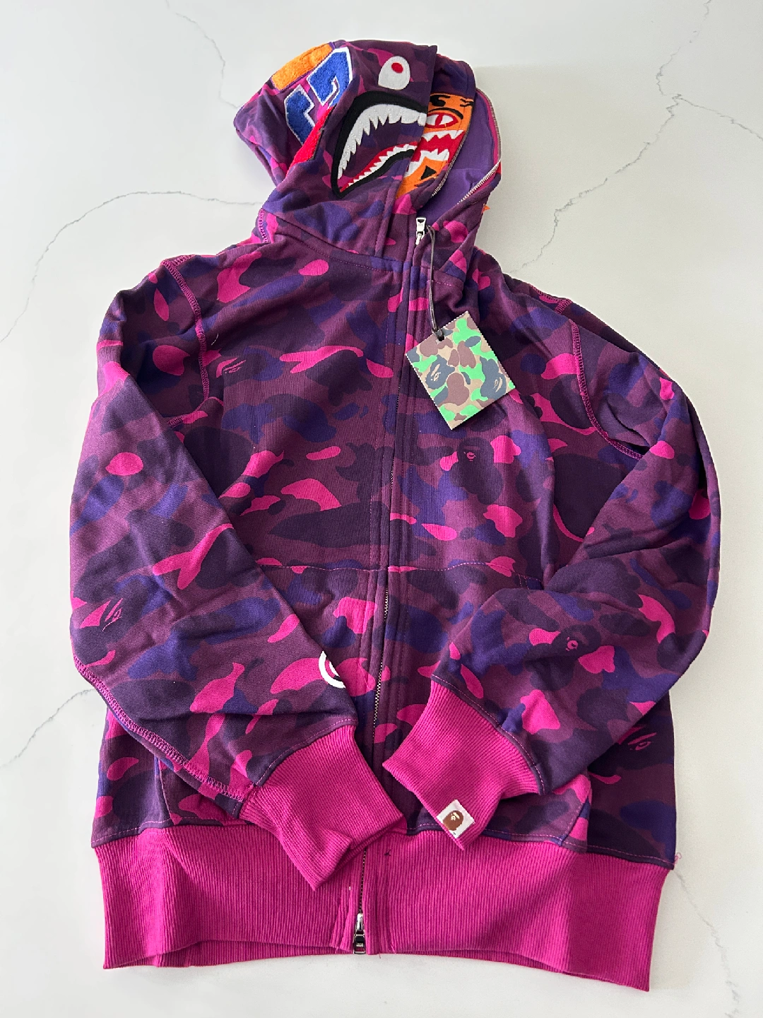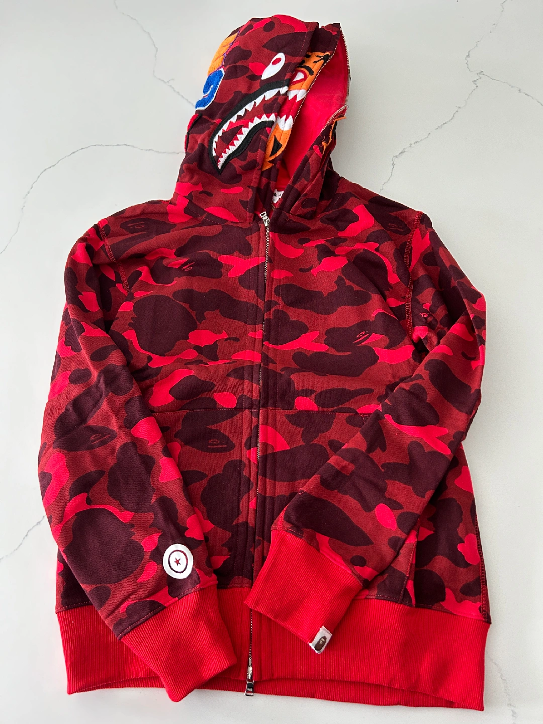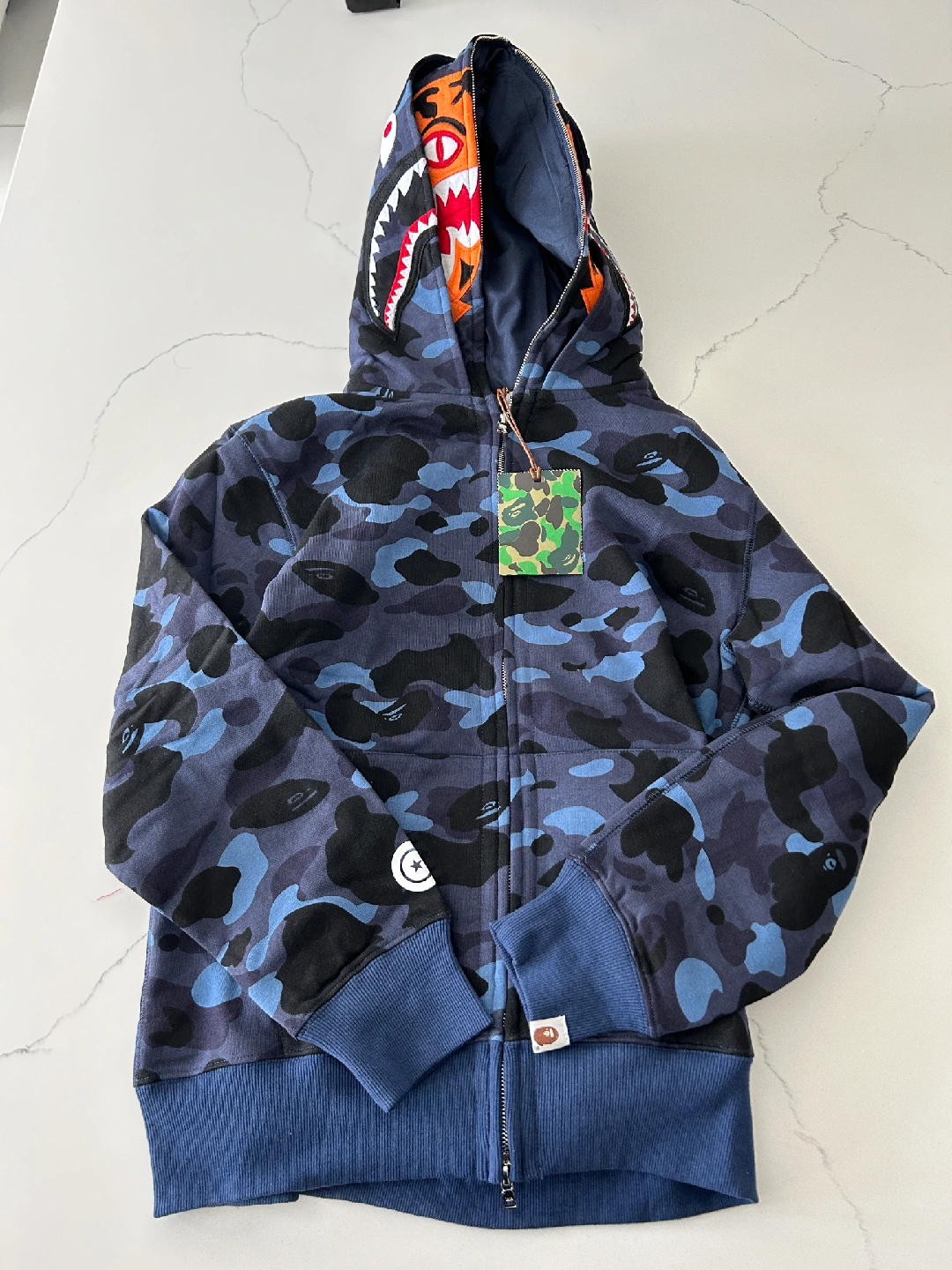 19Selling a BAPE (A Bathing Ape) Shark Full Zip Hoodie. Available in multiple colours and size large. Features: - Full zip - Shark design on hood - Camo pattern Perfect for adding a unique streetwear piece to your wardrobe! 1 of 1