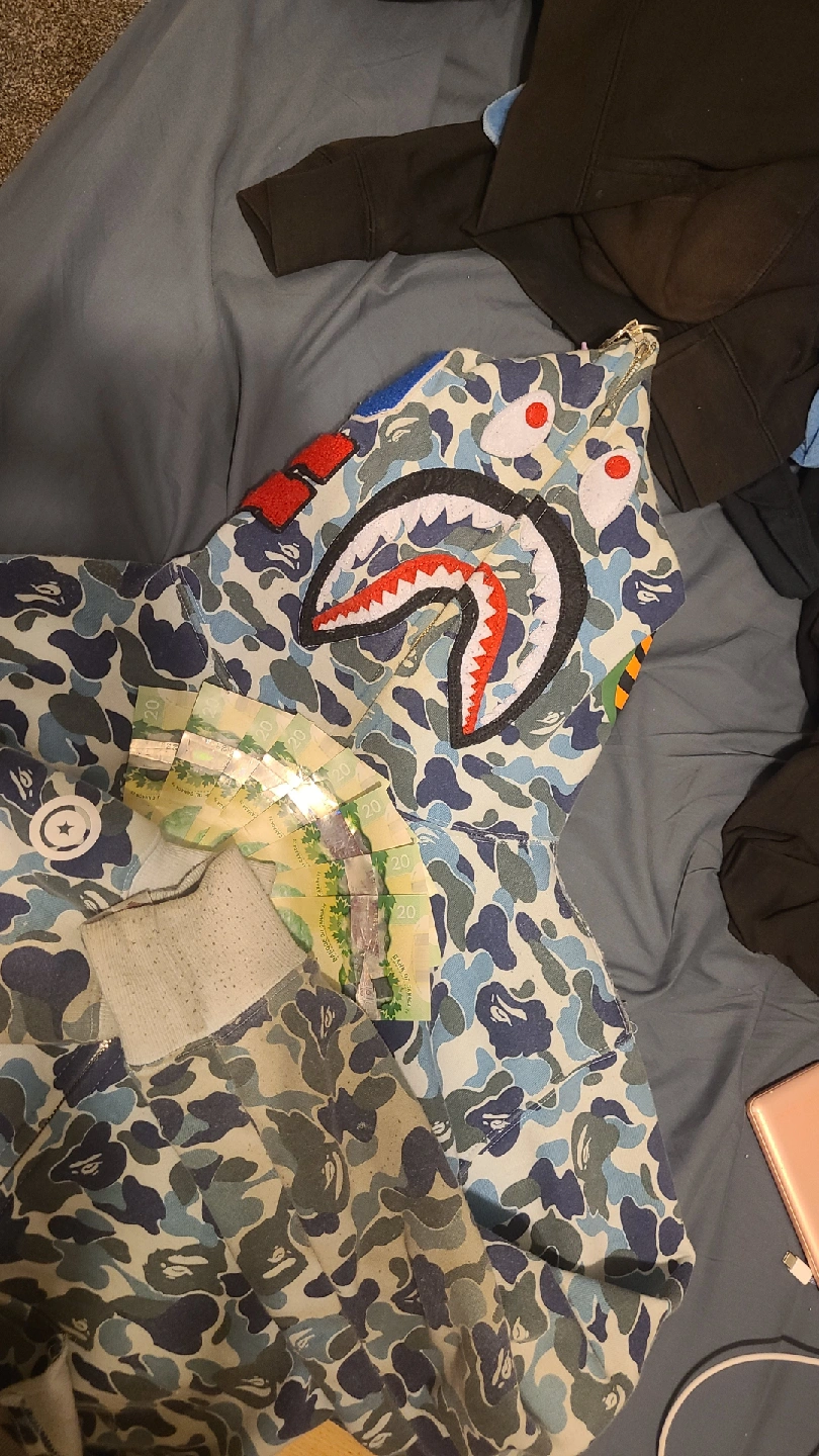 Selling a BAPE (A Bathing Ape) shark hoodie in a blue camo colourway! It's in great condition and features the iconic shark design on the hood. Perfect for adding a unique touch to your wardrobe!