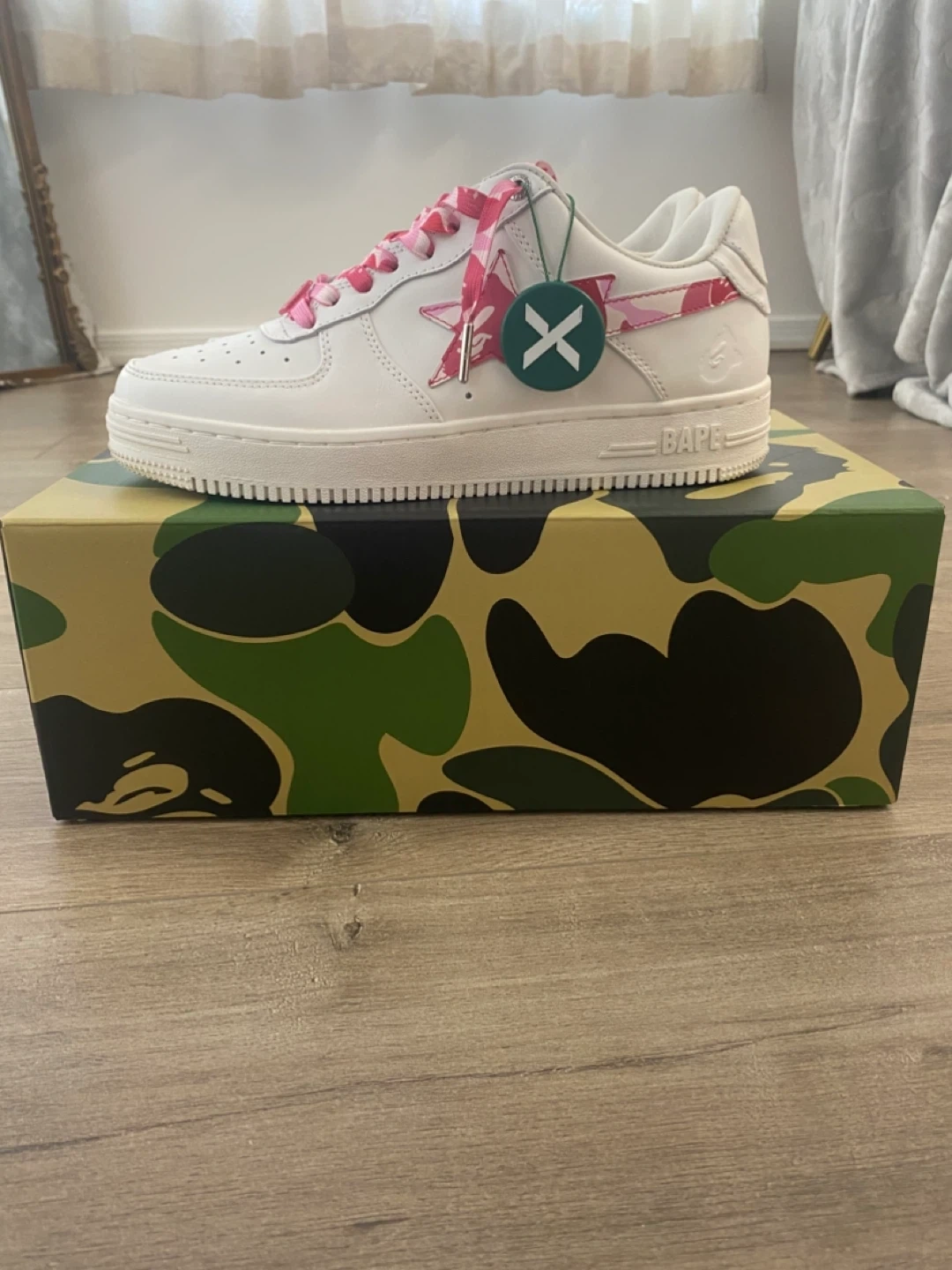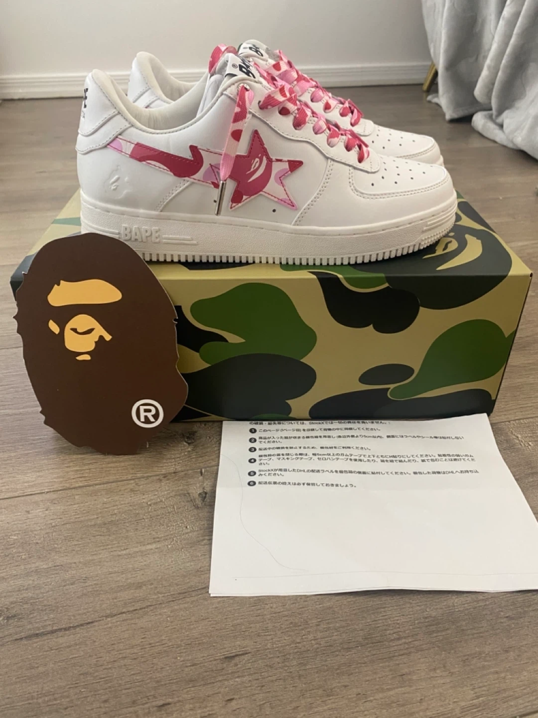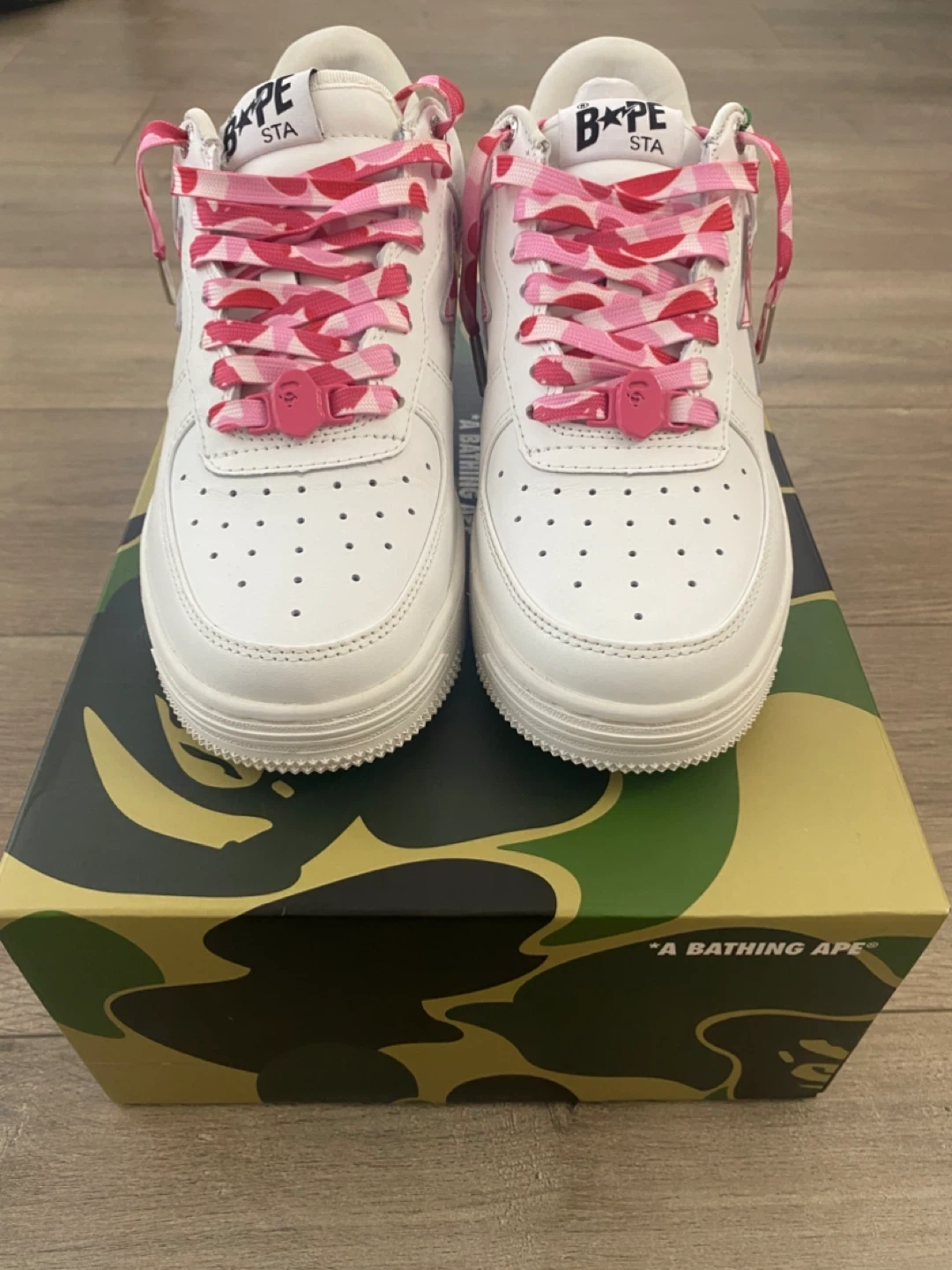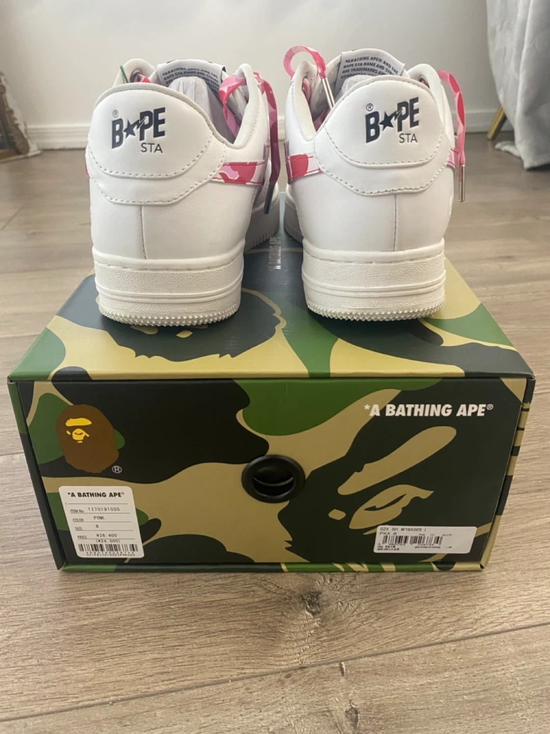 Selling a pair of BAPE STA sneakers in pink camo and They're in great condition and come with the original box. Size is US 8.