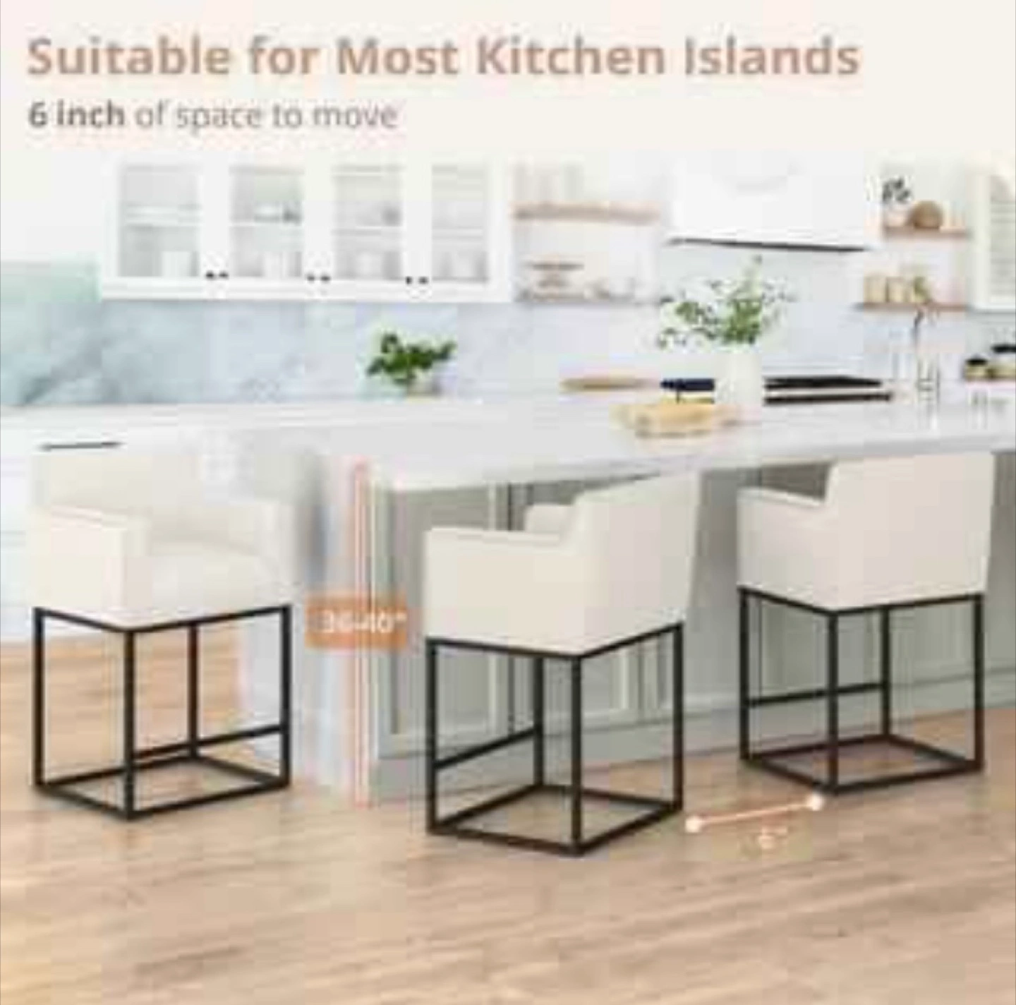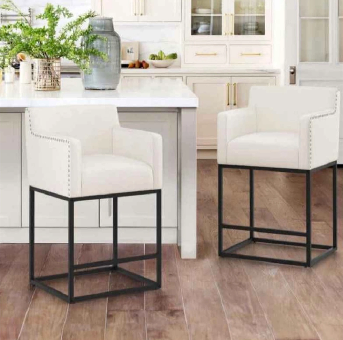 Brand New open box Luna Barstool 2pcs Luna 26 in. Beige Fabric Upholstered Counter Height Bar Stool With Black Metal Frame Square Counter Stool. Without Box