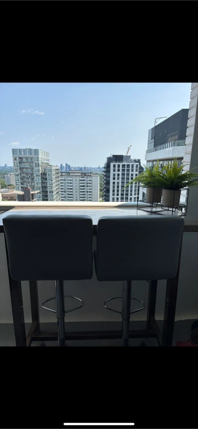 37Bar Table and Two Stools Set 3 Pieces Table Set metal Bar with High leather-metal Stools for Home We are selling a bar table with two stools. They are perfect for a small space/office or balcony. The stools are a sleek grey colour with a chrome metallic base. They are ready for a new home! ALSO | another option: Only the table : 150$ Thank you