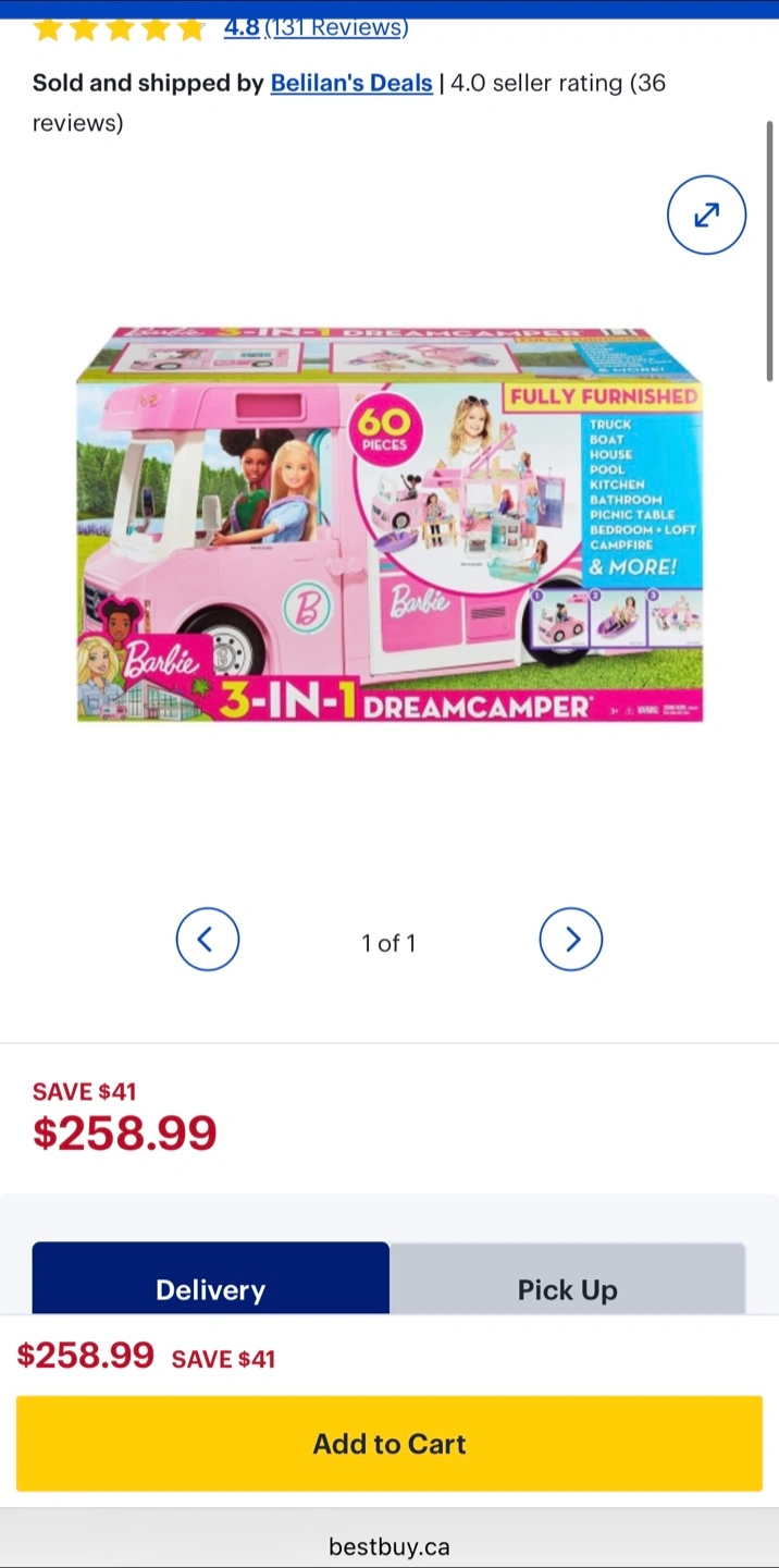 15Payed $300 at Best Buy Selling for $80 with the brand new Barbie doll, $100 with the brand new swimming Malibu Barbie, diving board and puppy added