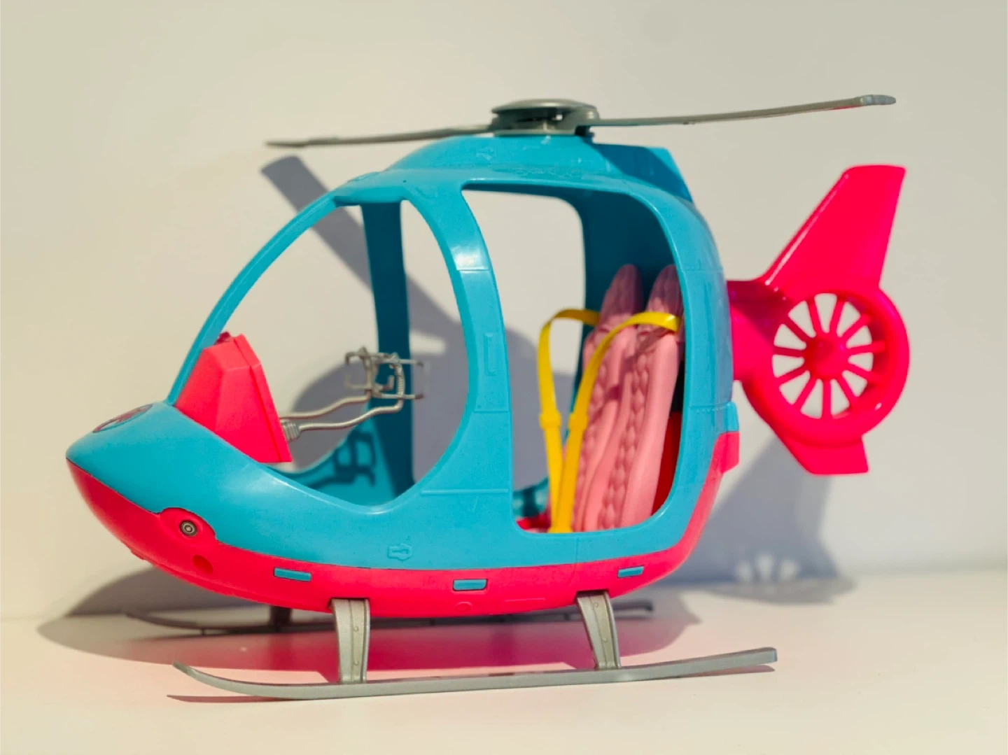 60Selling a Barbie helicopter toy! It's in great shape and ready for new adventures. This helicopter features a fun design with pink and blue accents. Perfect for imaginative play!