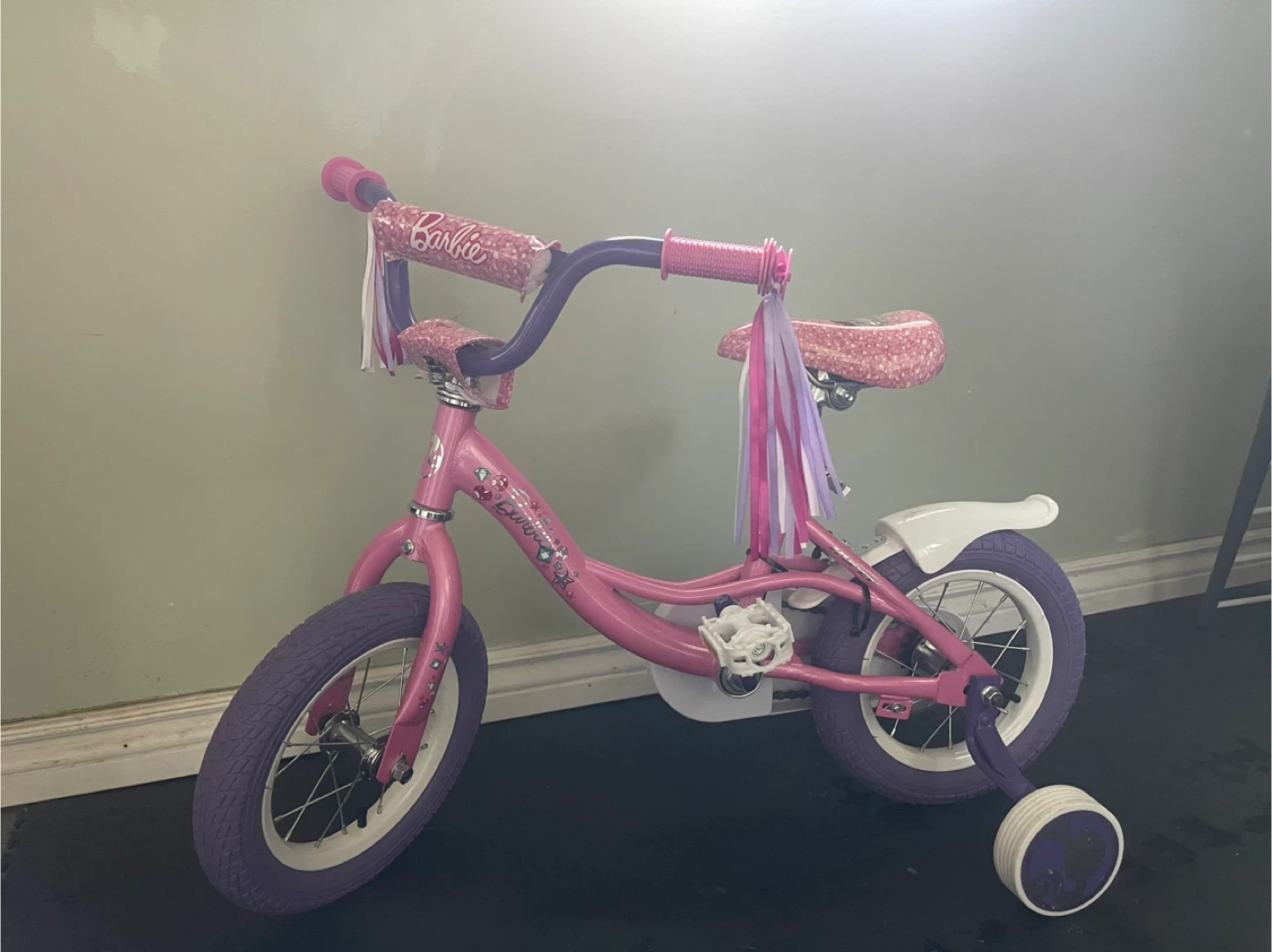 10Selling a cute Barbie bike for kids! It's pink and purple, perfect for a little one learning to ride. It has training wheels and fun Barbie decorations