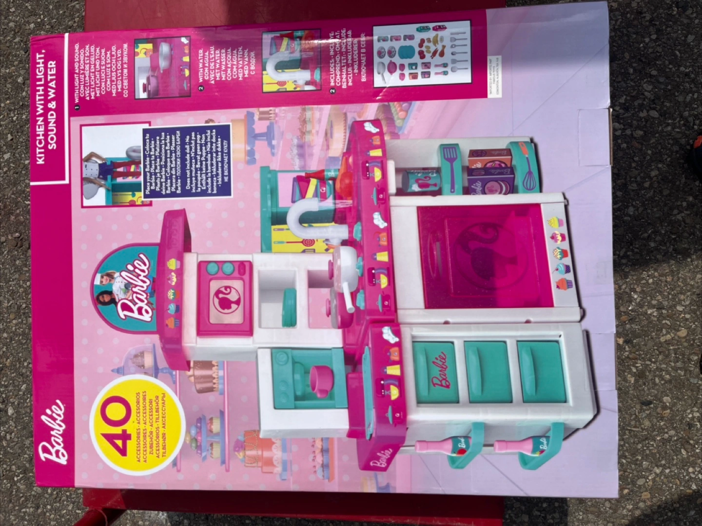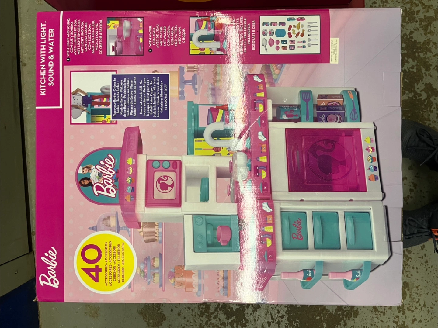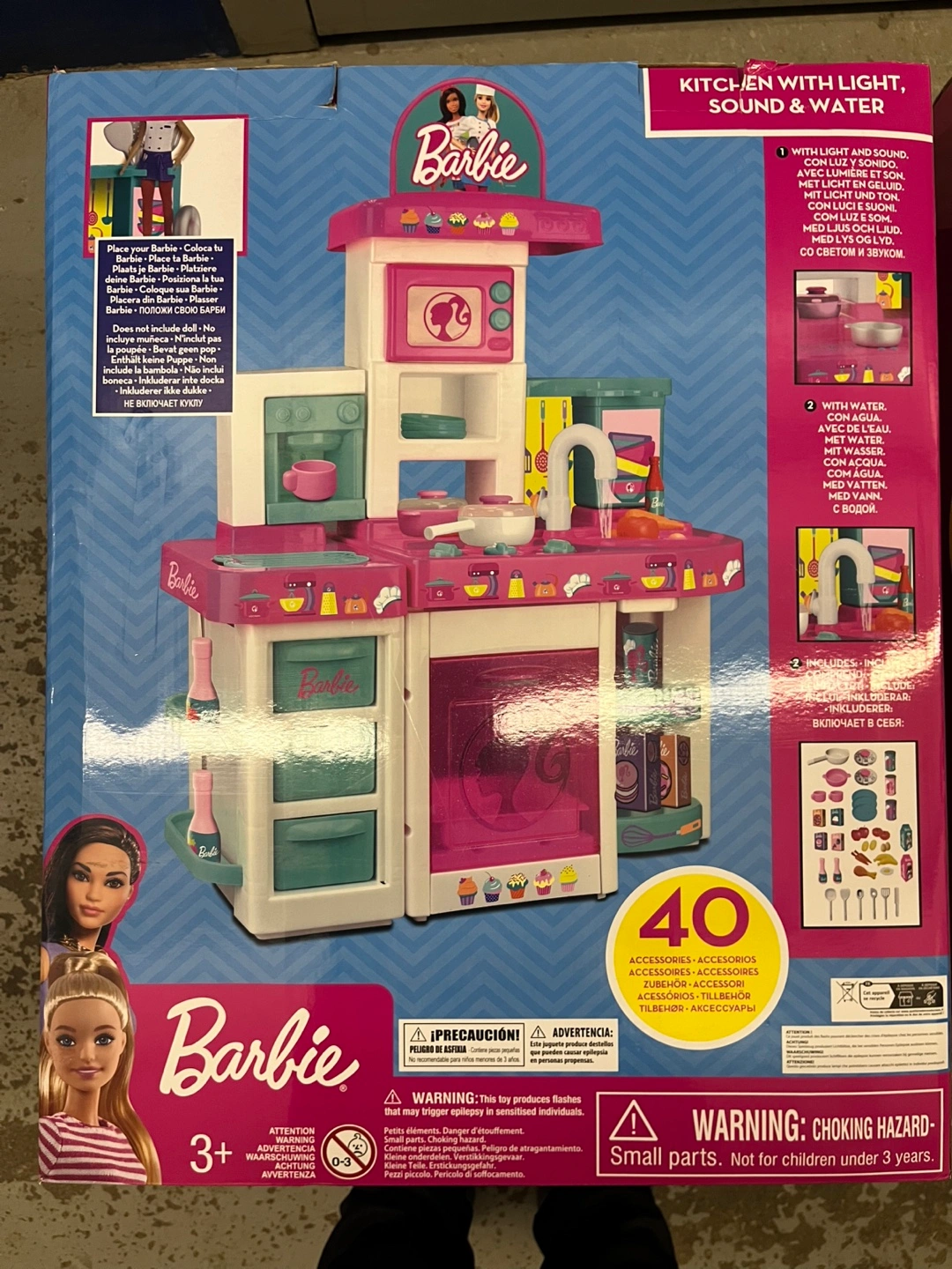 This Barbie Kitchen with Light & Sound comes with 40 accessories! It's perfect for kids aged 3+ who love to play pretend. Includes light and sound features for an immersive experience. The set is in great condition and ready for a new home!