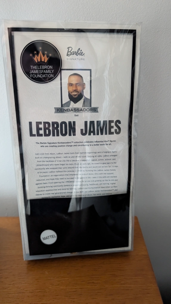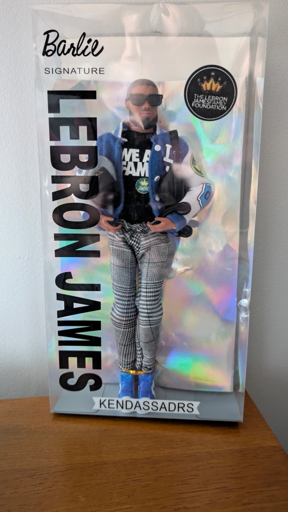 LeBron James doll still in its original packaging. Features a jacket and stylish pants. Has sunglasses on. Makes a perfect addition to any collector's display.