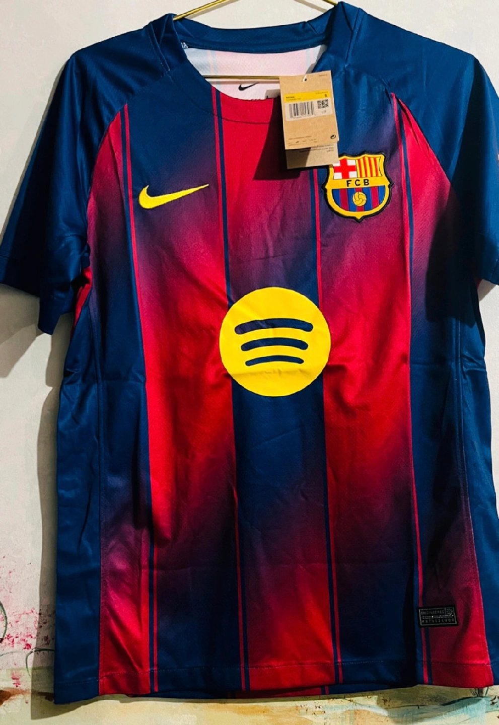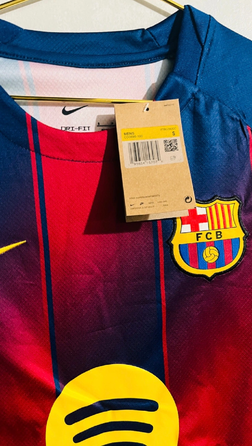 Get ready to show your support with this brand new Nike FC Barcelona Dri-FIT Stadium jersey, featuring the iconic blue and garnet colours and Spotify sponsor logo. Key Features: - Brand: Nike - Team: FC Barcelona - Technology: Dri-FIT - Sponsor: Spotify - Size: S pick up is in Brampton near Sheridan College Davis campus.