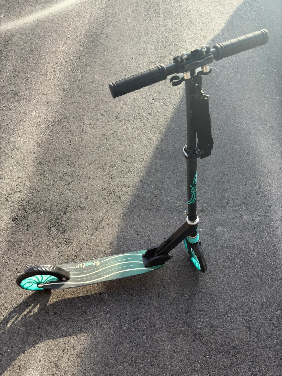 86Scooter used only a few times, teal and black colour scheme. Minor wear on base. Great condition. Folds for easy storage and transport. Great for commuting or recreational use.