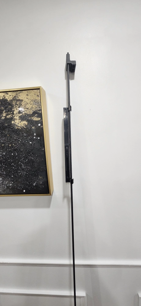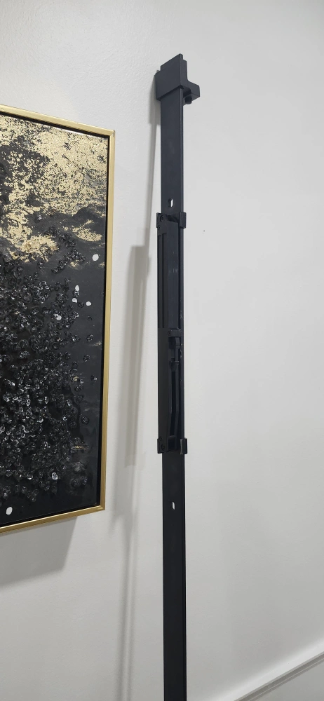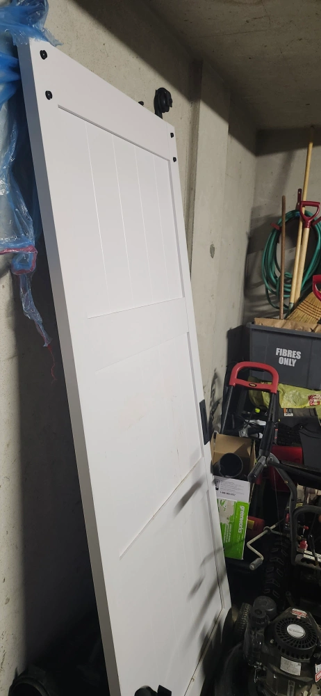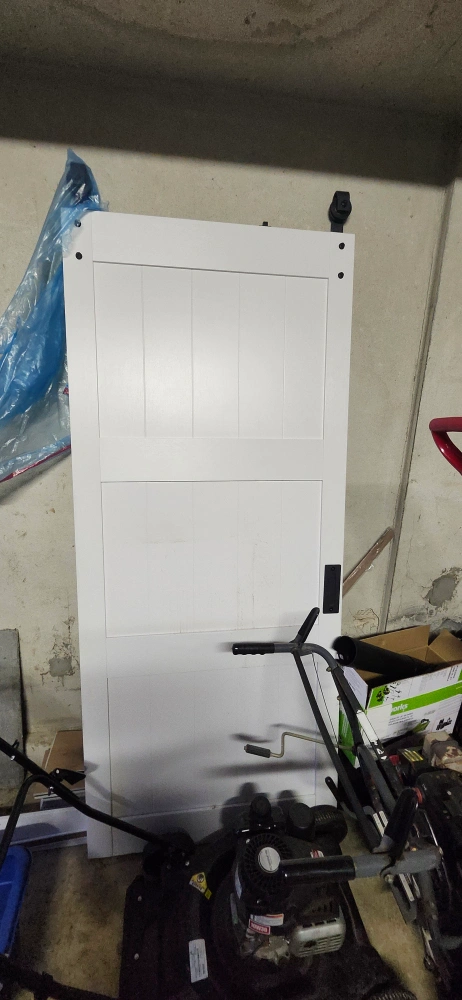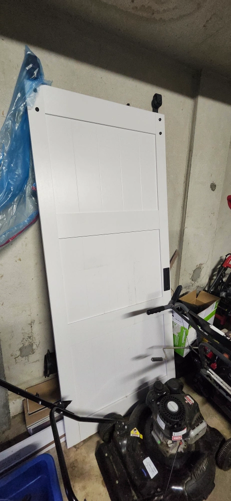 Black metal hardware for sliding barn door. Could be a nice accent for your home. Hardware is for a single door. along both the door