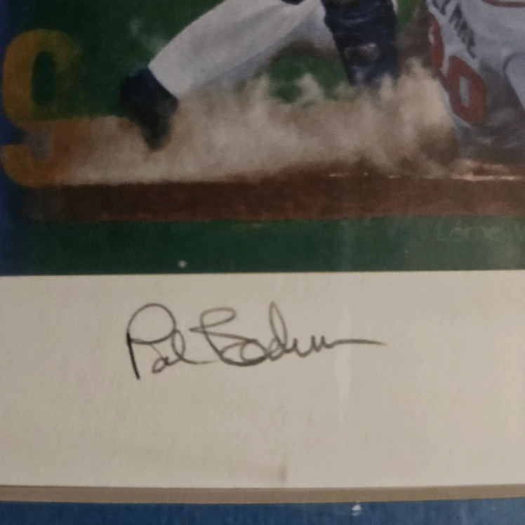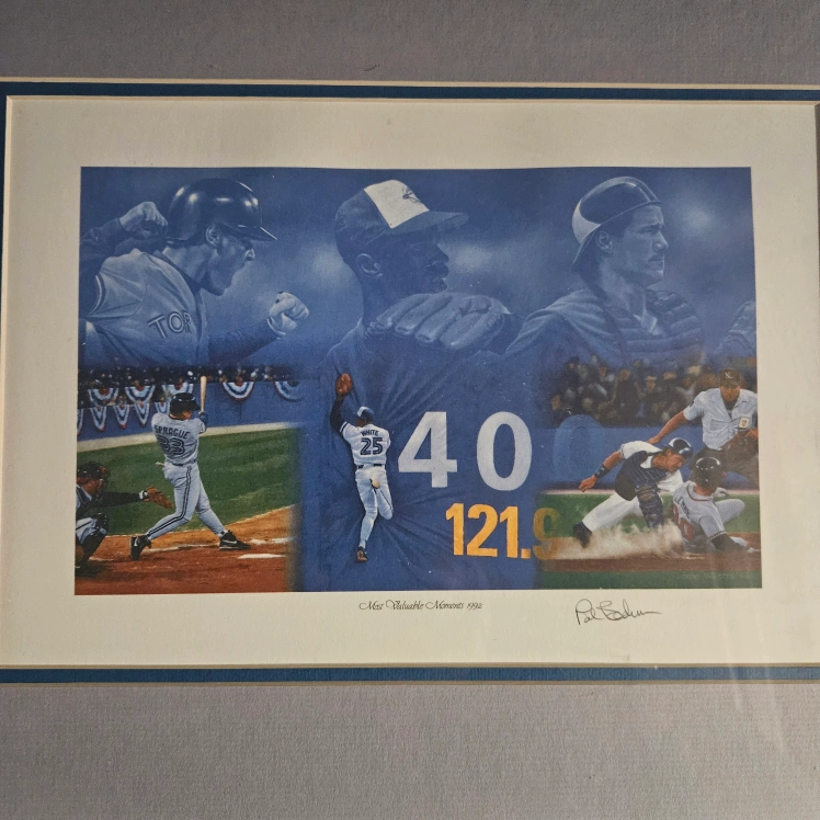 10Selling a framed print titled 'Most Valuable Moments 1992'. It features baseball players and moments from that year. The print is signed by Pat Borders.