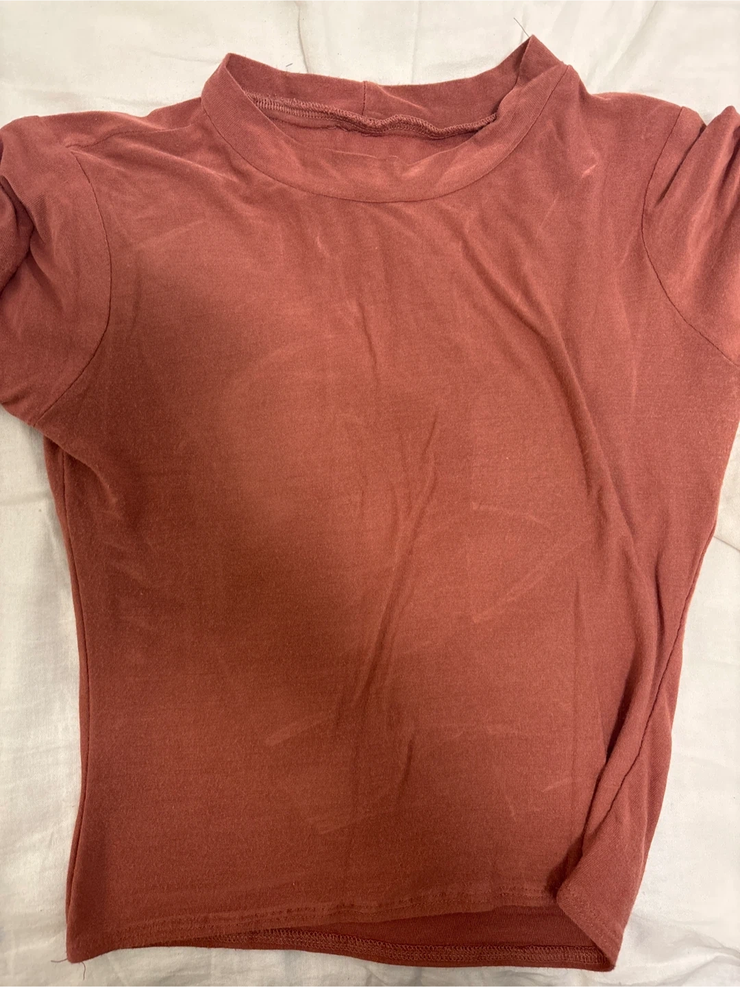 10A gently used t-shirt in a terracotta colour. It's in good condition and ready for a new home!