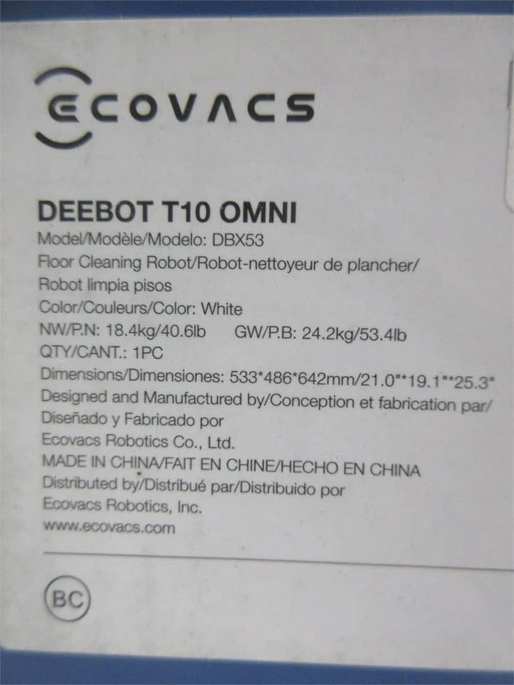 NEW - ECOVACS DEEBOT T10 OMNI Robot Vacuum & Mop (White)