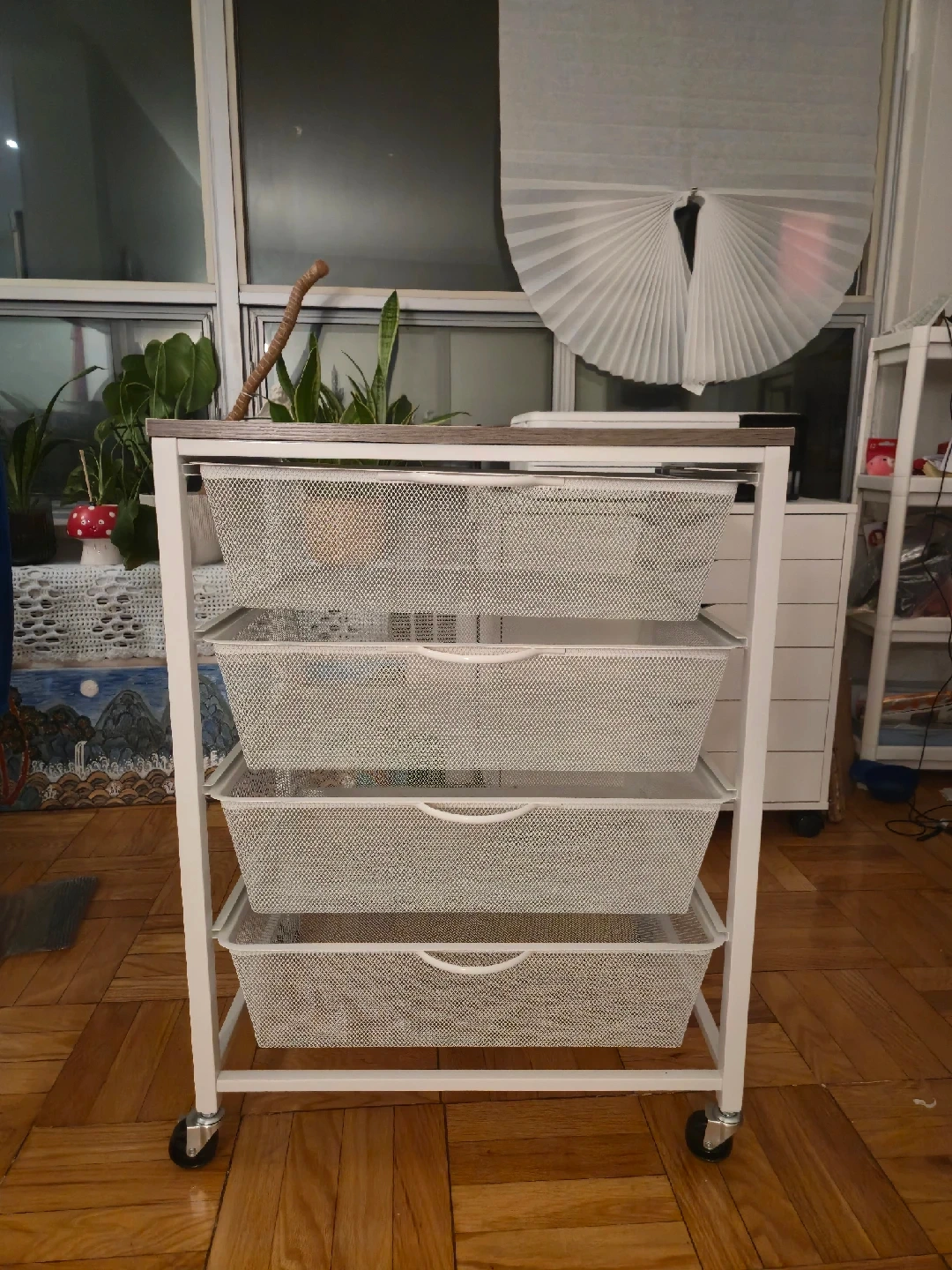 Costco white rolling cart with 4 mesh drawers
