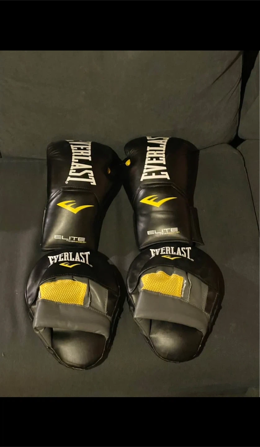 Everlast Elite Boxing Gloves and focus Mitt Set