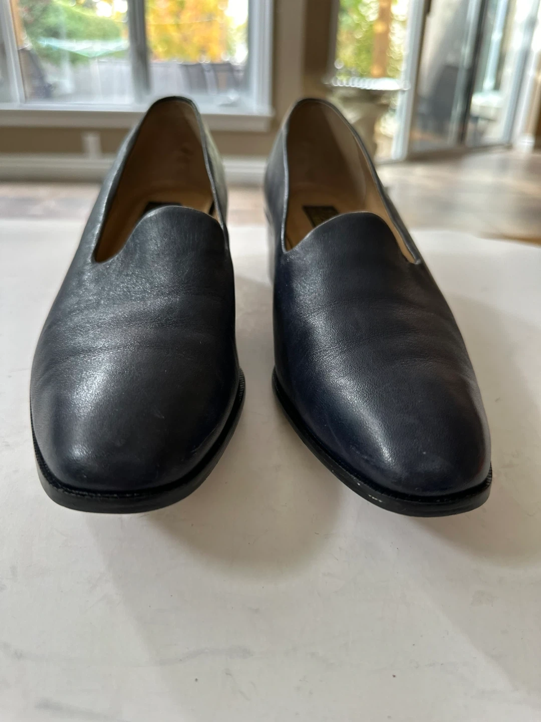 65Selling a pair of classic navy leather loafers from Bata! In excellent preloved condition. They fit a narrower foot and more like a 8.5 although they are labeled a size 9. They're in great shape and ready for a new home. Perfect for adding a touch of sophistication to any outfit These shoes have been meticulously cleaned and sanitized. From a smoke free, pet free home. Pick up in Alta Vista.