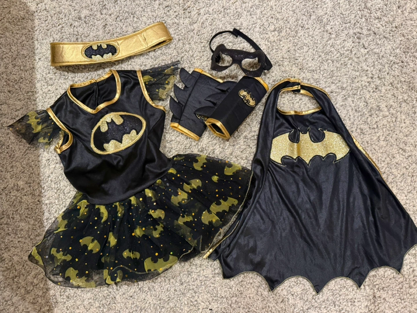 Selling a cute Batgirl costume! It comes with the tutu dress, cape, belt, wristbands, and eye mask. Perfect for dress-up or Halloween! Tag says size small - My niece was 3 in pic, but tall, so I would say it would probably fit from age 2-4 (possibly even 5 depending on child) Pickup near Jane and Rutherford or Hwy 7 and Weston Rd