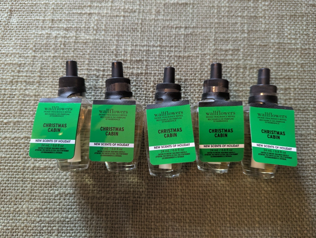 20Selling 5 Bath & Body Works Wallflowers refills in the Christmas Cabin scent! These are perfect for adding a cozy, festive aroma to your home this holiday season. Each refill contains 24 ml / 0.8 fl oz of fragrance all 5 for $10 CASH ONLY