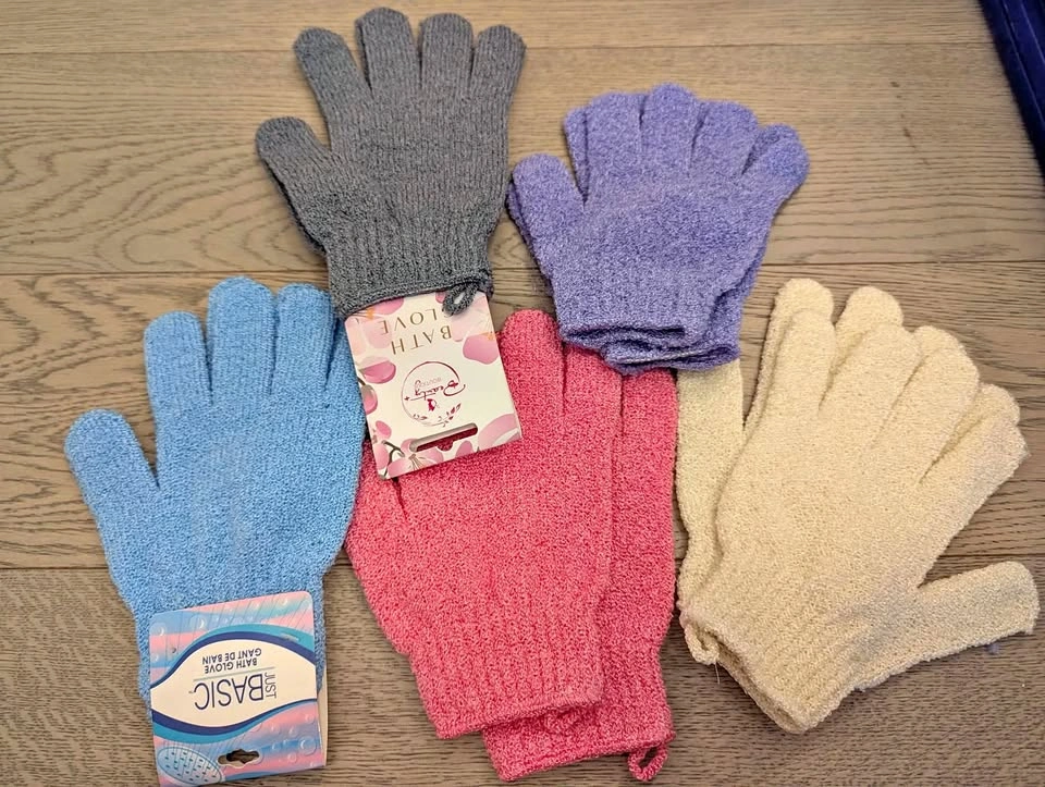 5 pairs of bath gloves - $5 for all of them together. All brand new, never been used. We keep getting them as gifts even though we don't use them. Pickup near 49th and Cambie