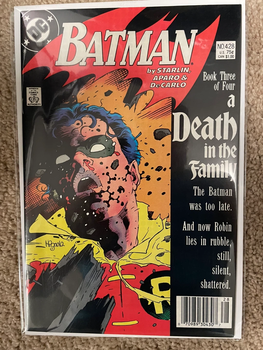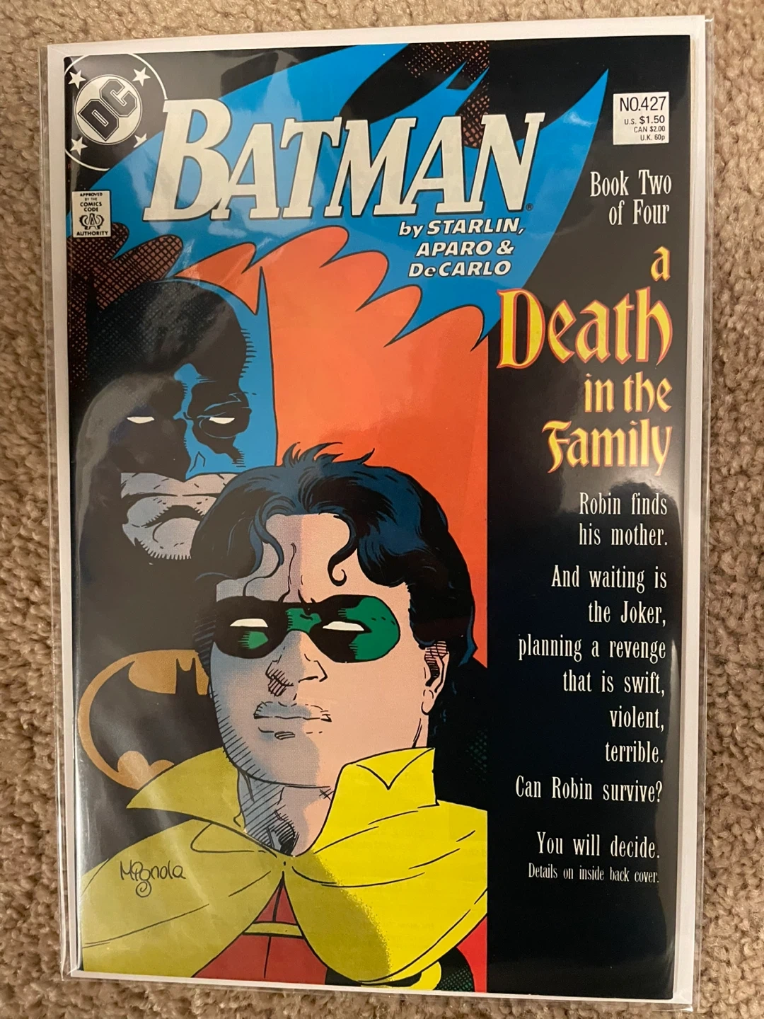 Copper Age Batman Late 80s Batman A Death in the Family Includes Batman 426, 427, 428 (Newsstand), 429 all are VF/NM The infamous storyline climaxing with the Joker beating Robin/Jason Todd to death. Art by Jim Starlin. Sold as a set. $115 Another infamous story from the late 80s: The Killing Joke (2nd Print) VF/NM The Joker shoots Barbara Gordon (aka Batgirl) severing her spine and paralyzing her. This event leads to her becoming Oracle later on. $20 Free local pick up in Winnipeg. Shipping within Canada, please ask