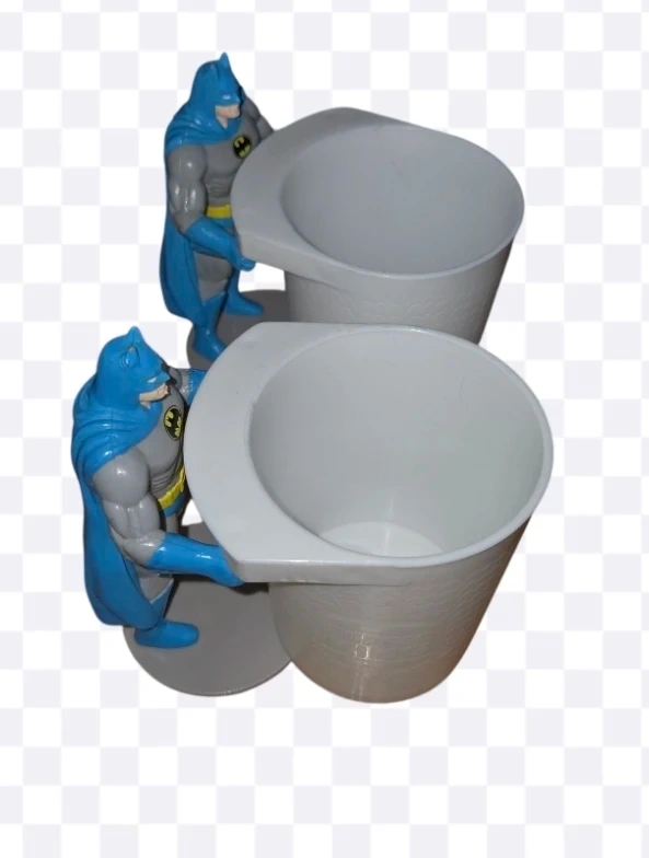 65Selling a set of two Batman figural mugs. These unique mugs feature a Batman figure holding up the mug portion, making them a fun addition to any collection or a great gift for a Batman fan
