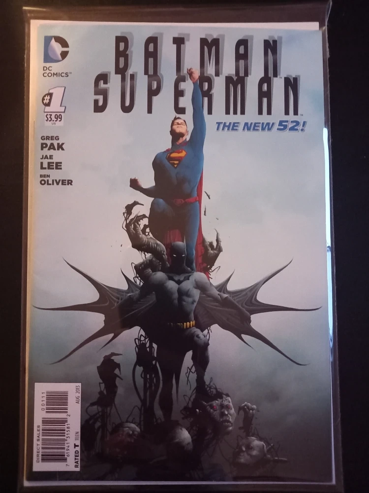 65Selling a Batman/Superman #1 comic book from DC Comics! This is from The New 52 series, featuring art by Greg Pak, Jae Lee, and Ben Oliver.