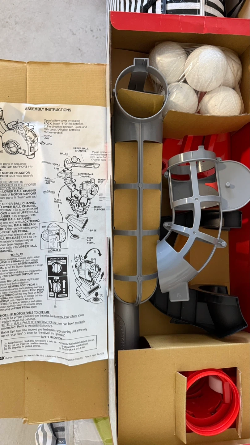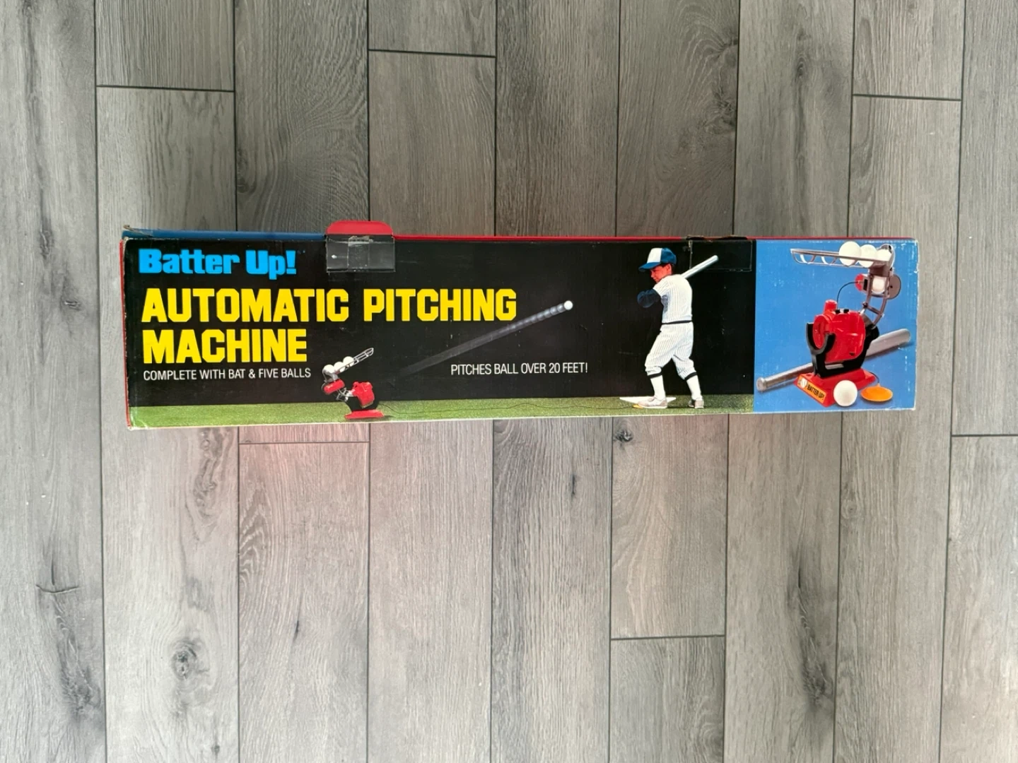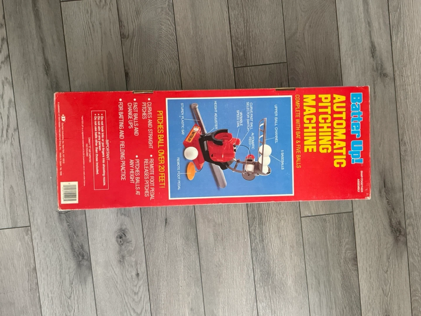 18Batter Up! Automatic Pitching Machine complete with bat and 5 balls. Has a remote foot pedal for batting and fielding practice #Baseball