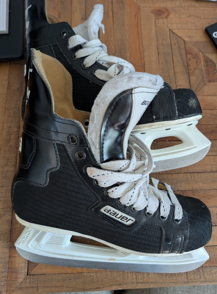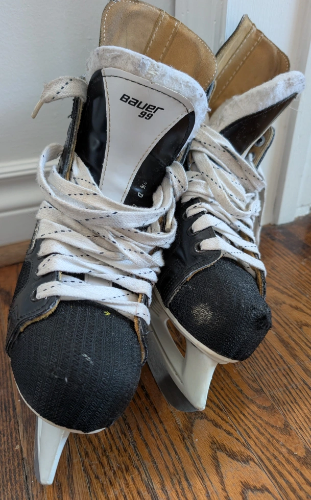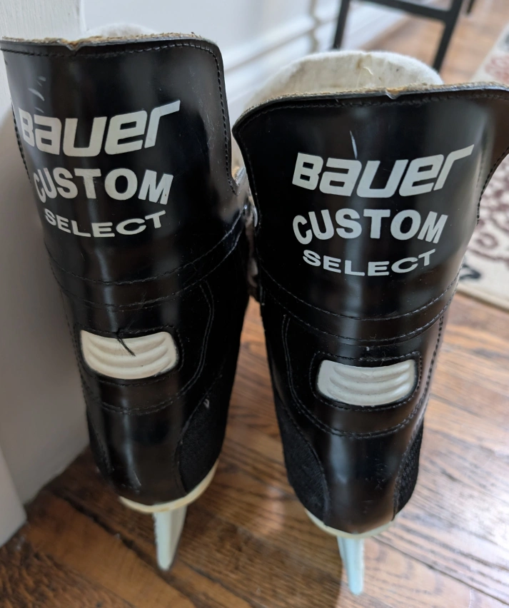 Bauer 99 Custom Select ice hockey skates. Older model, but still in good condition for hitting the ice. They need a sharpen. Size 9 2/3" / 246mm Pick-up Leslie/Dundas.