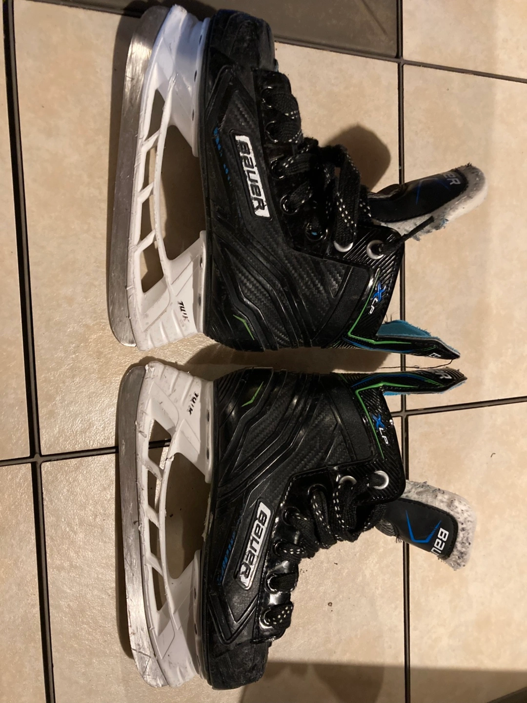 Selling a pair of size 1 Bauer ice hockey skates. They are black in colour and in average condition. Perfect for hitting the ice this winter!