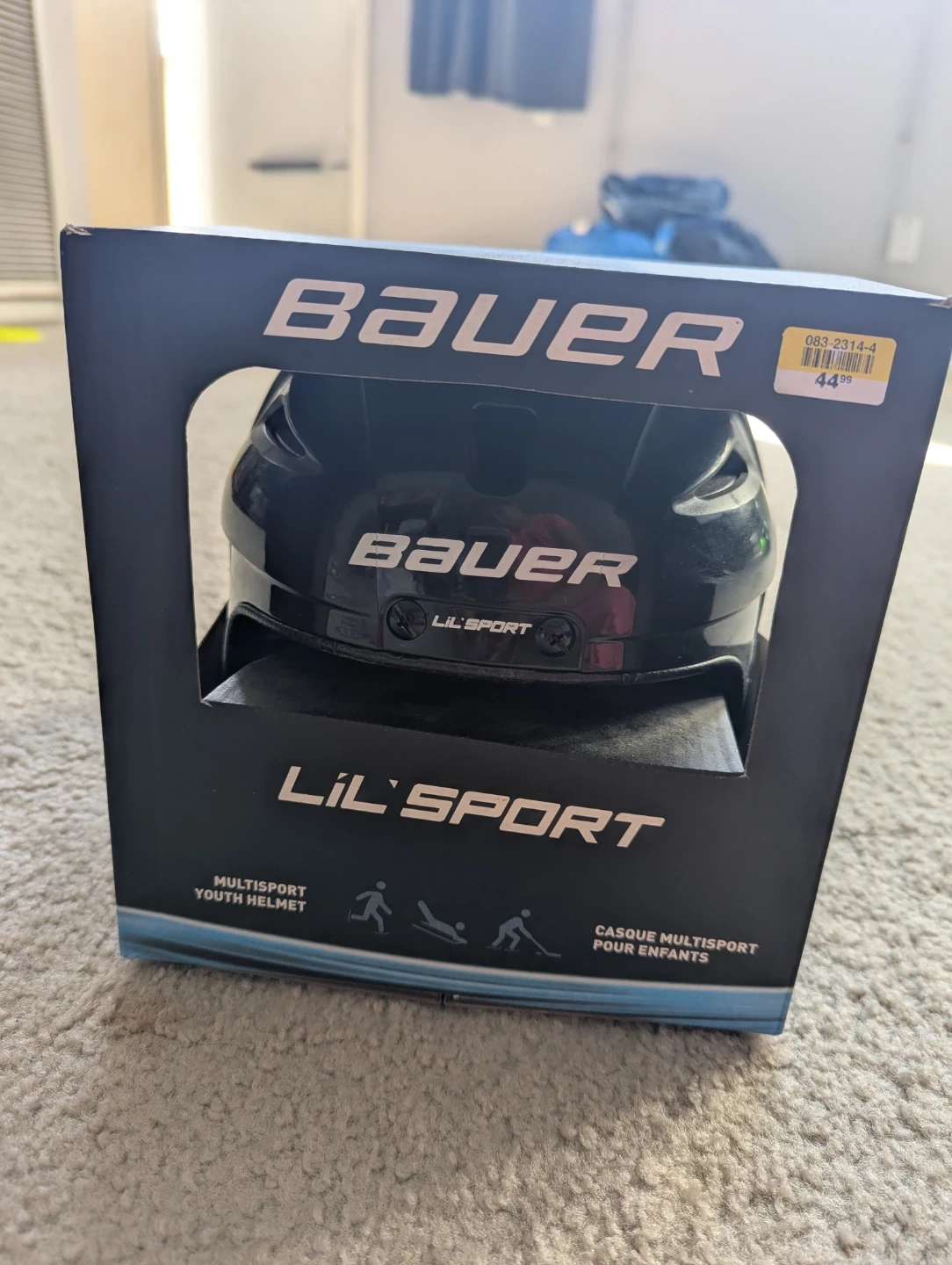 47Selling a Bauer Lil' Sport youth helmet, perfect for ages 7 and under! It fits hat sizes 6 - 6 1/2, or head circumferences of 48.5cm - 54cm. The helmet features multi-impact absorption liner and comfort padding. The box is included! Barely used