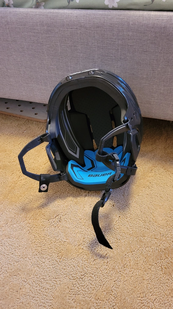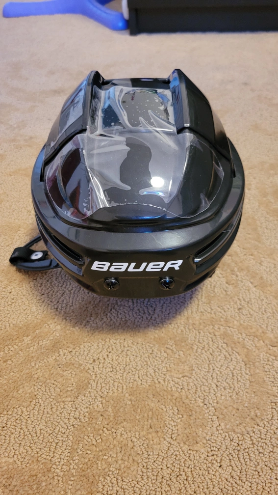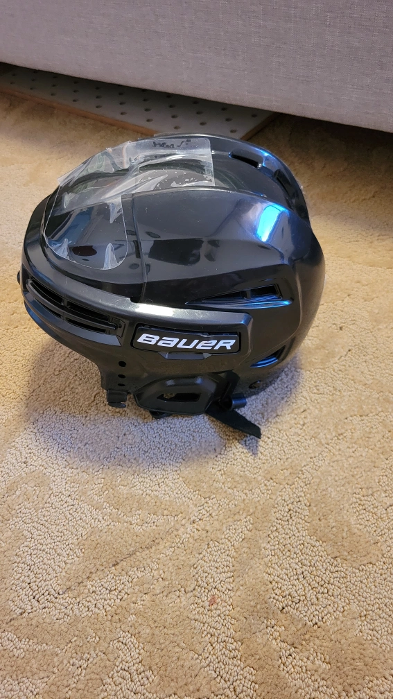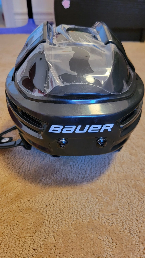 Selling a Bauer helmet. Mint condition. worn only a few times. color black. size 6 to 6.5, as shown on the label. Can be worn for ice skating or hockey.