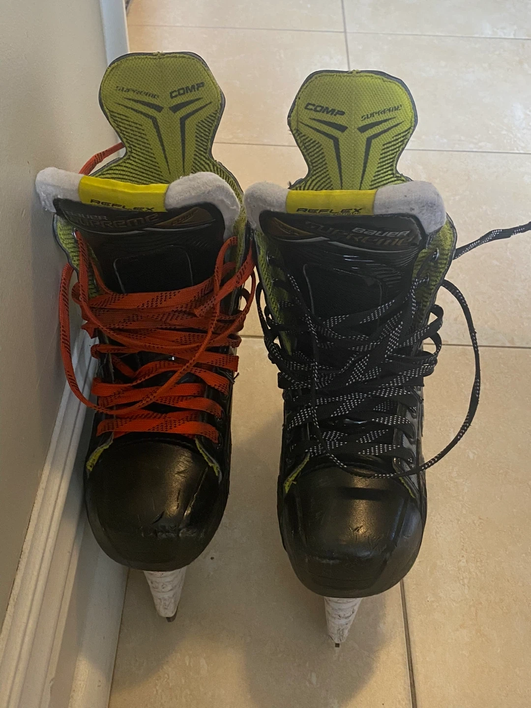 10Selling a pair of Bauer Supreme Comp ice hockey skates in size 3D. These skates have the TUUK Lightspeed Edge and LS2+ steel blades which generally stay sharper longer. They are in very good condition and ready for the ice! They were purchased new and lightly used for one season. They are my son’s favourite skates but are now unfortunately too small.