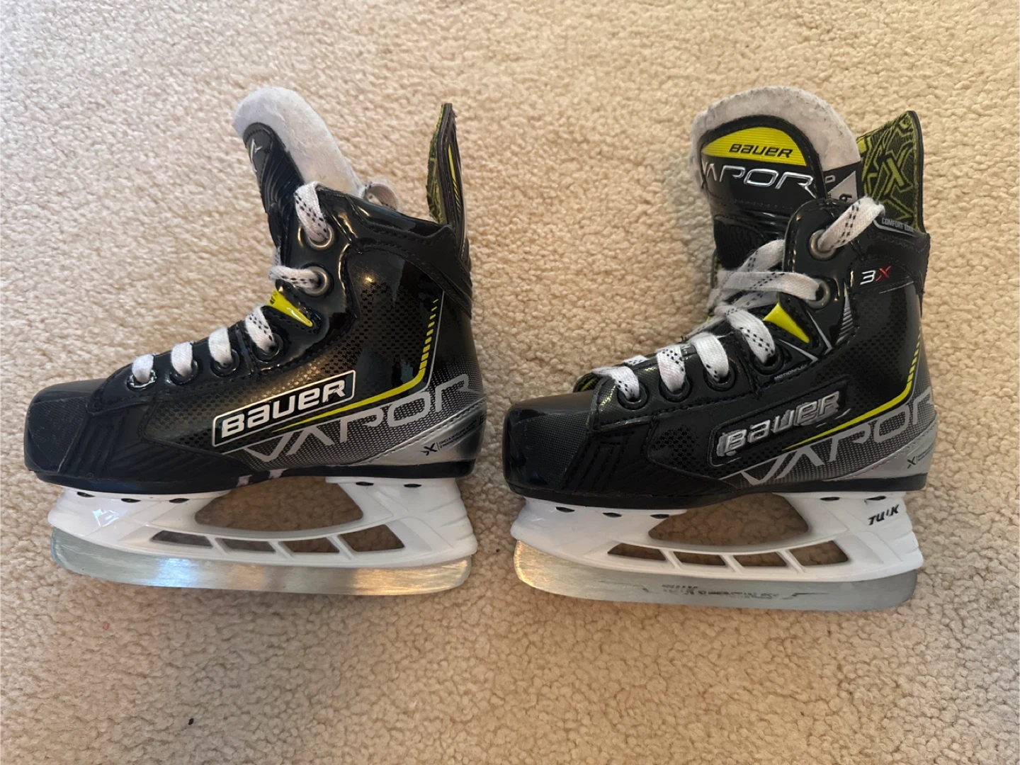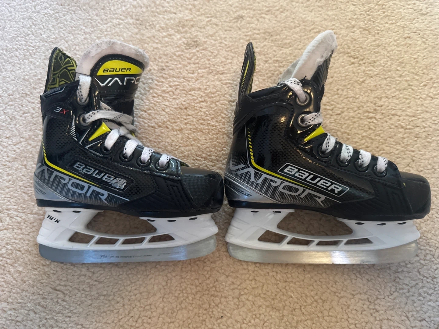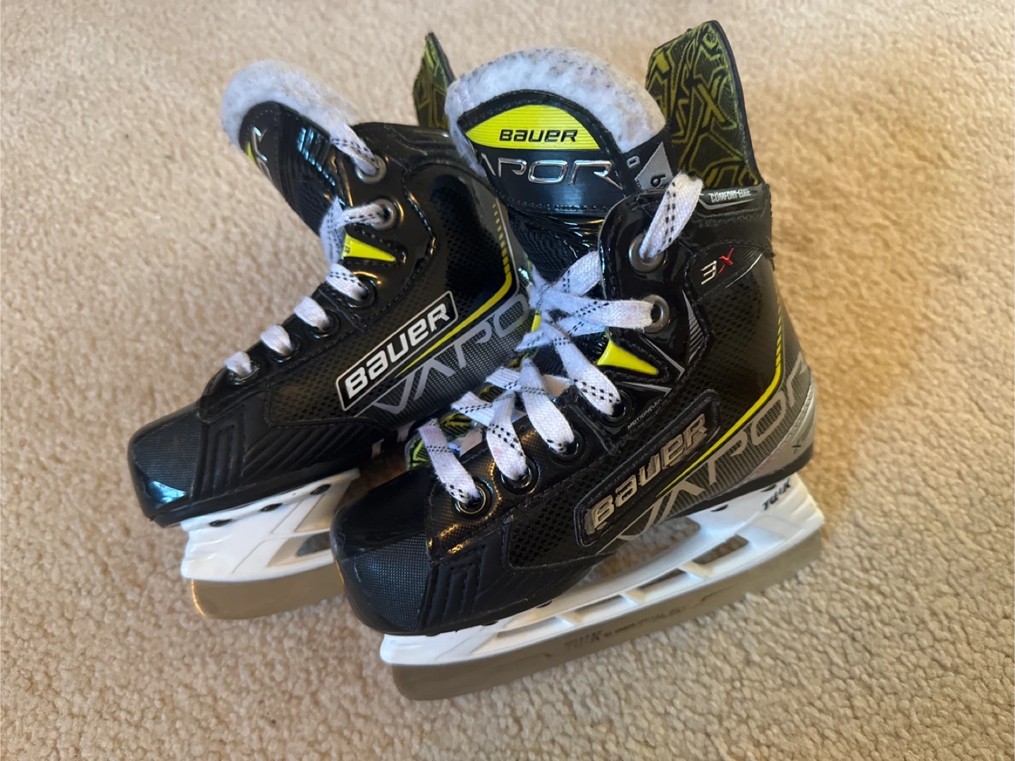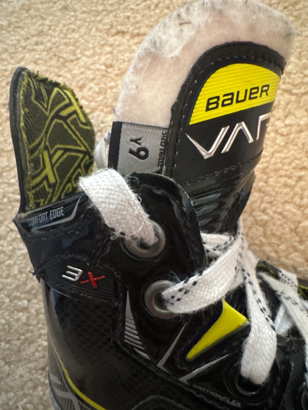 62Selling a pair of Bauer Vapor 3X ice hockey skates in size Y9. They are in great condition and ready for the ice! Perfect for someone looking for a reliable and comfortable pair of skates.