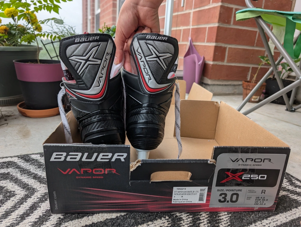 Selling a pair of rarely used Bauer Vapor X250 ice hockey skates. They are a size 3.0 R. Comes with the original box! US size 4